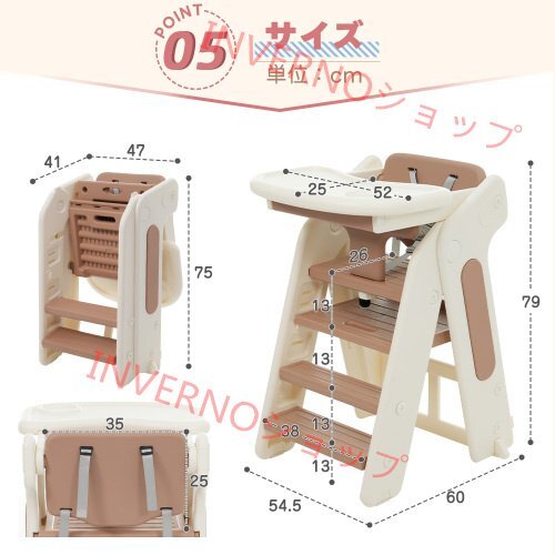 • 【食事チェア】高い角度でお子様が大人と一に食事をするのを楽しむことができます。トレー付き、お手入れ楽々。場合によってトレーだけ外して洗える。トレーは前後に3段調節でき、動くスペース余裕。赤ちゃんの体に合わせて調整して、食事をより快適に楽しむ。5点式シートベルトを付属し、取り外しも可能。取り外し可能な安全ガード。お子様の立ち上がるのや転落を防ぐ。自由に長さは調整できます。