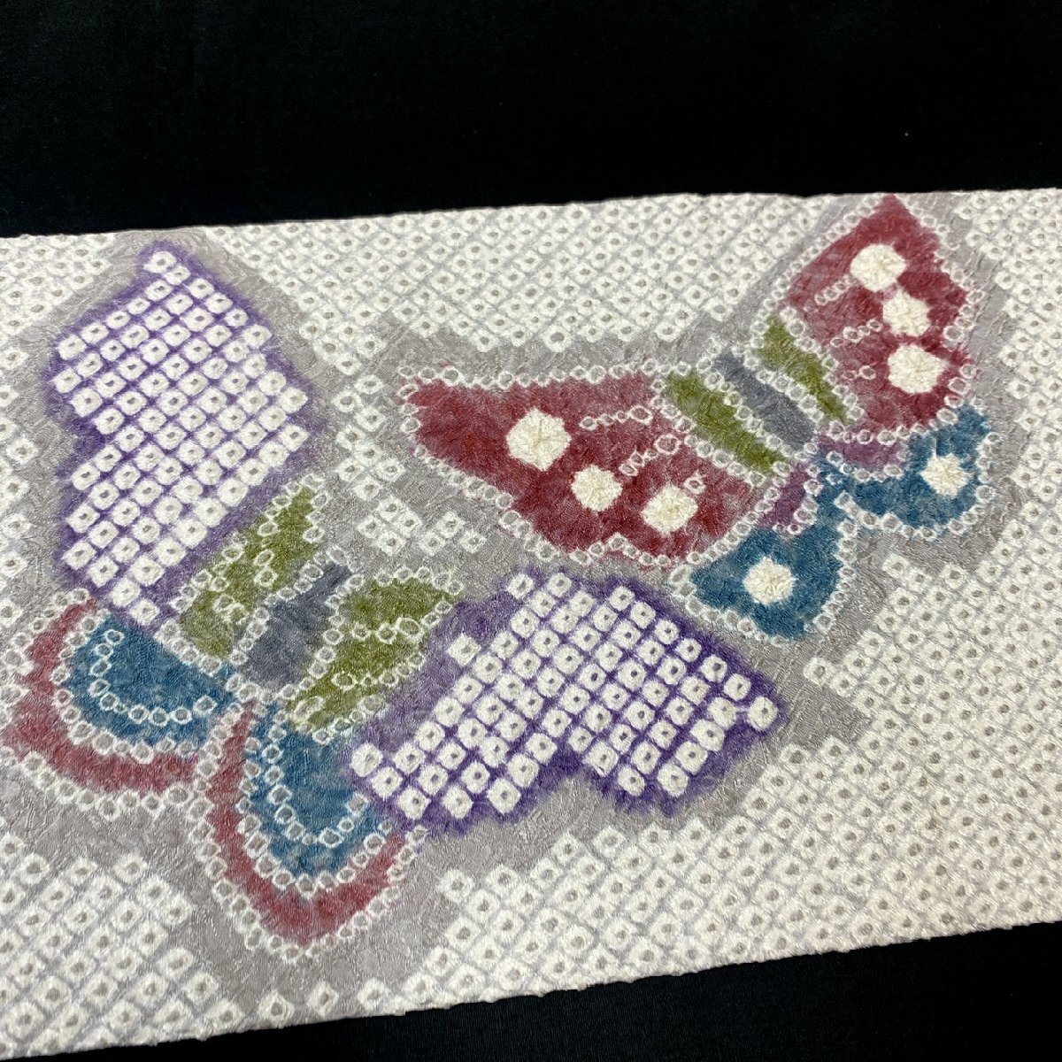着物月花 藤娘きぬたや 本疋田絞り 蝶々 9寸名古屋帯 お太鼓柄 正絹 ガード加工 ob7055