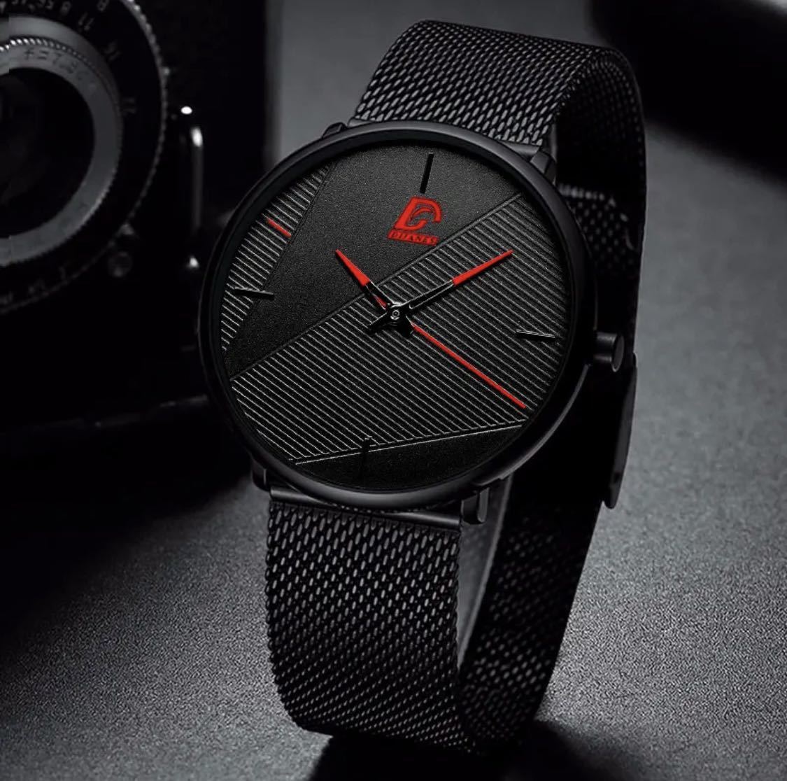 腕時計 男性 超薄型 ステンレス鋼 ステンレスベルト クォーツ腕時計