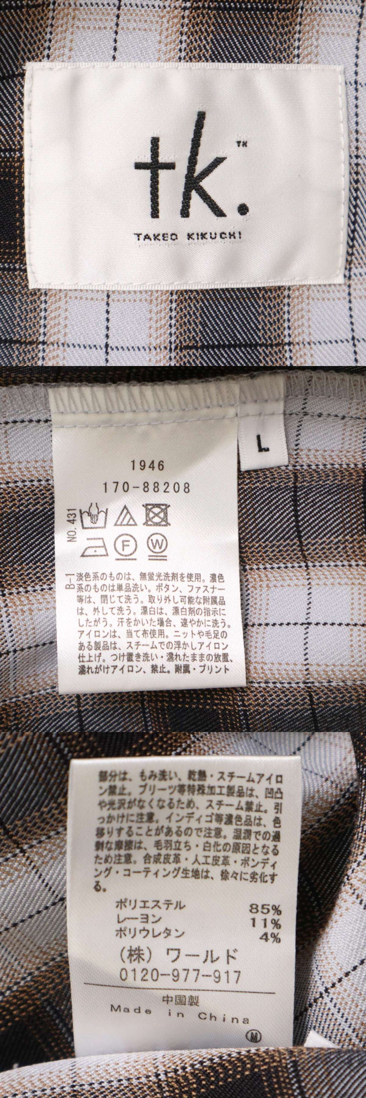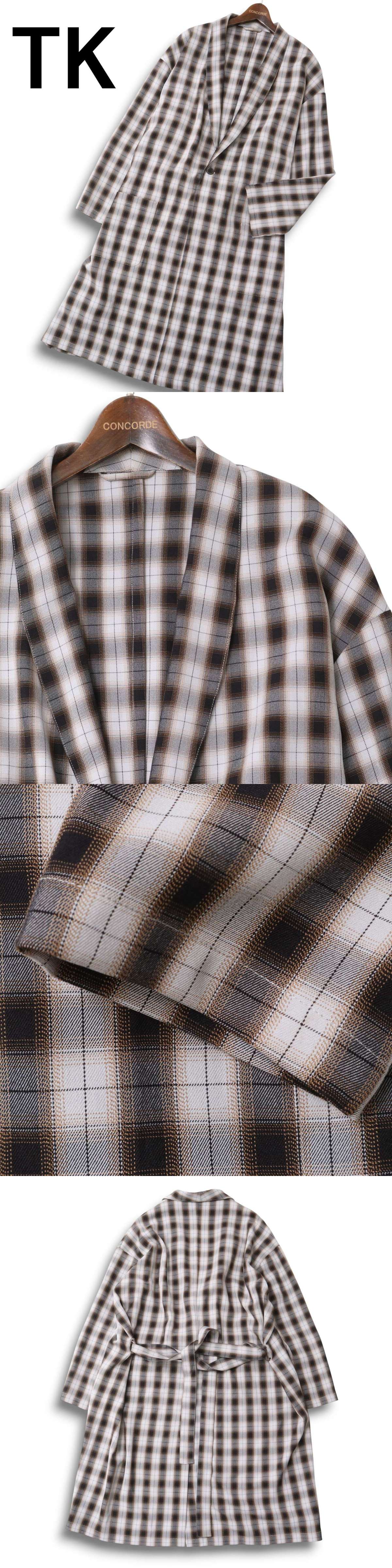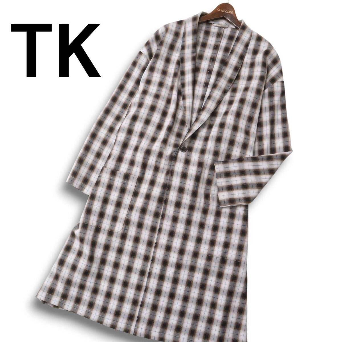 tk TAKEO KIKUCHI タケオキクチ 通年 ショールカラー チェック ロング カーディガン ガウン 羽織り Sz.L メンズSz.L メンズ
