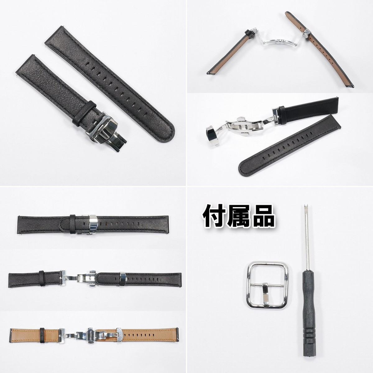 ・レザーの場合、通常のピンバックルですと脱着で革が傷みやすいのですが、こちらはプッシュ式のDバックル付きなので革が傷みにくく、なおかつ時計の脱着もとても楽です。