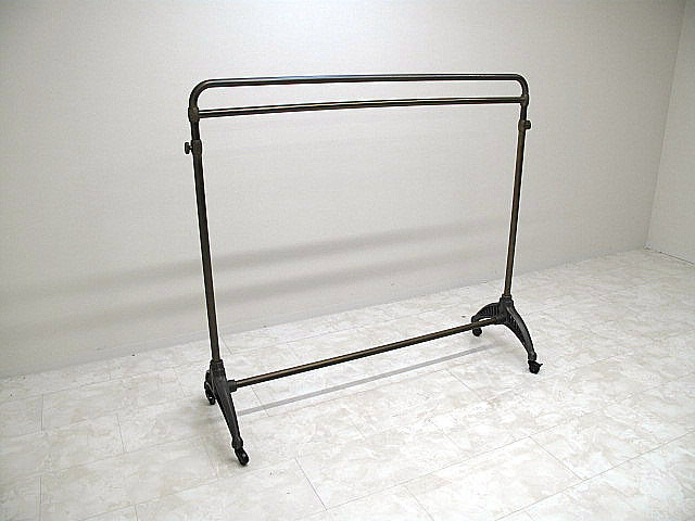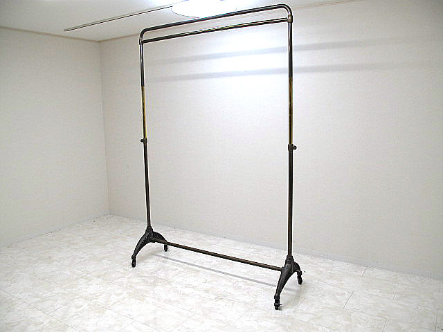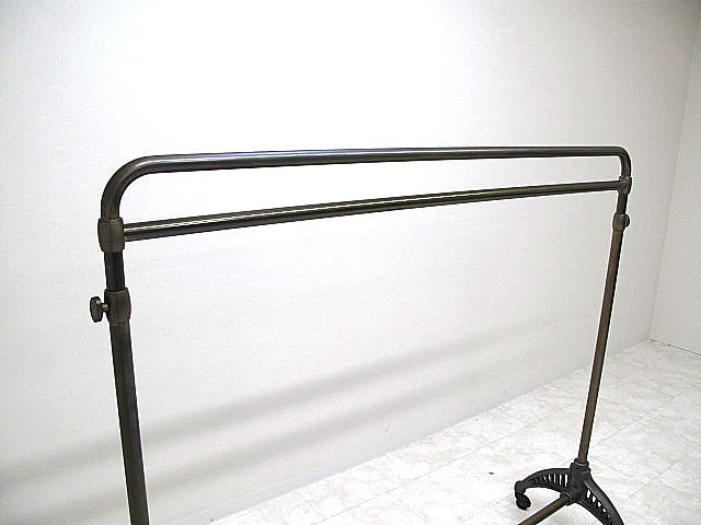 【希少品】西川金太郎 真鍮×鋳物 ハンガーラック キャスター付 高さ調整可 W152cm  店舗什器 インダストリアル ヴィンテージ