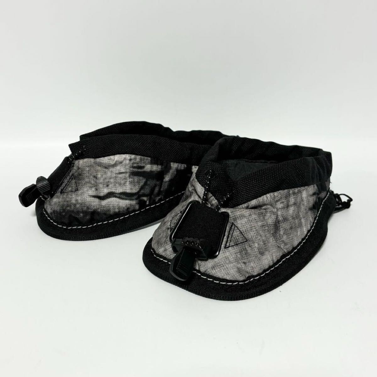 モノクロームカモプリントのゲイター(フットカバー)は雨や風の侵入を防ぎ足元を快適に保ちます。