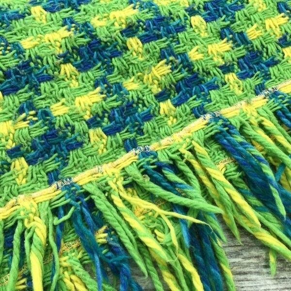 good night グッドナイト フリンジ ニット 大判 緑青 です。