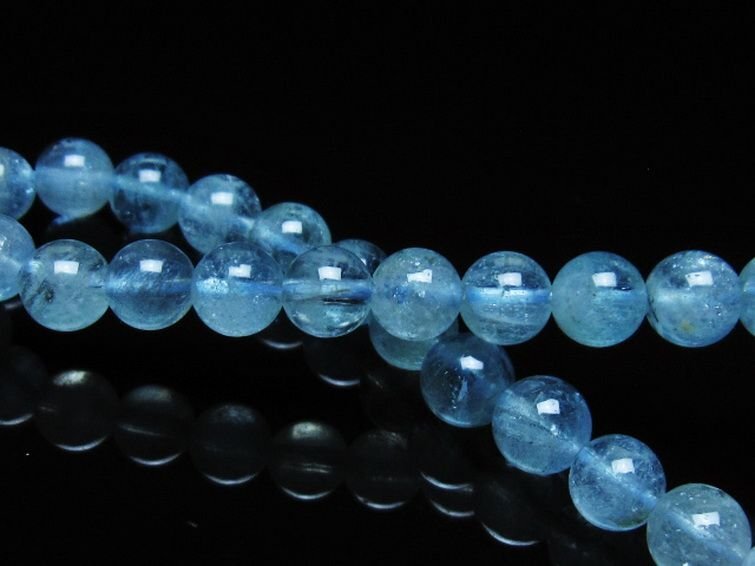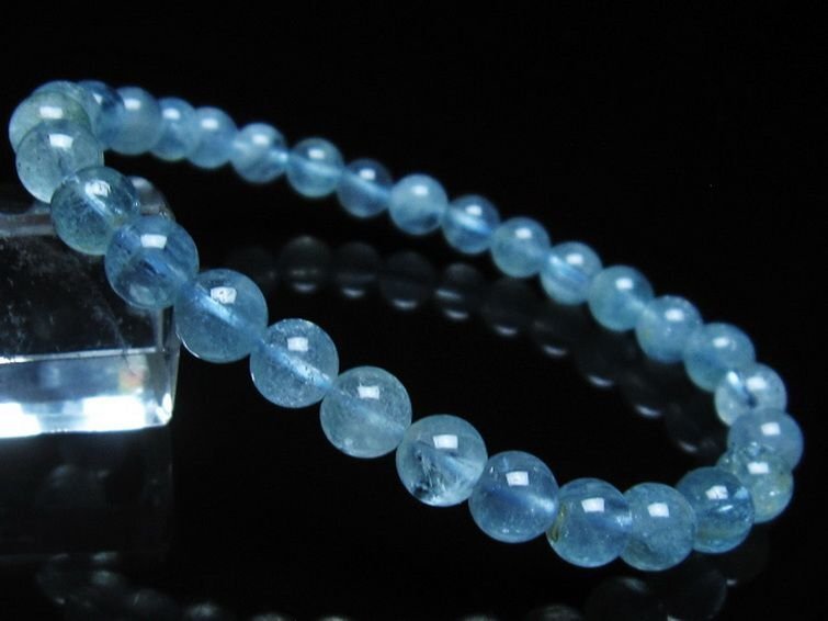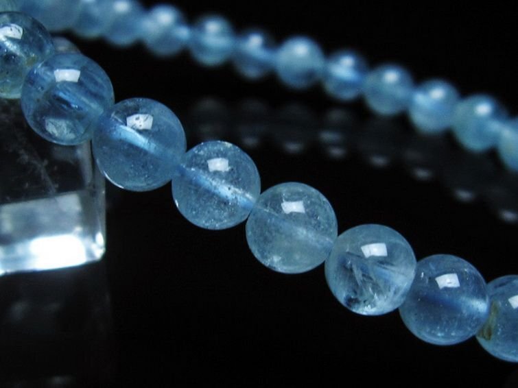 ■商品名: アクアマリンブレスレット ■商品ID: T537-15252 ■商品重量:約 9.8g ■商品サイズ:内周約:154mm(±5mm)粒直径約:6mm(±0.5mm) 【アクアマリン(藍玉)】 3月の誕生石として知られた天然石です。 ベリル(緑柱石)の一種のためエメラルドやモルガナイト、レッドベリルなどと同じグループにあるパワーストーンで、アクアマリンはブルーベリルの別名を持ちます。 「アクアマリン」という名称の語源はラテン語で水の意味のアクアと海の意味のマリナスに由来しています。 古代ローマの漁夫たちが海難防止と豊漁のお守りにしていたことや、海の精の宝物が海底から浜辺に打ち合げられて宝石になったとされているという言い伝えがあり、アクアマリンは旅の安全のお守りとして一つは持っておきたいストーンです。 また、アクアマリンは穏やかさと包容力をもたらし、免疫力を高め体の不調を整え精神面と体調面でのサポートをしてくれるとされています。 さらには夫婦愛を高め恋人同士のすれ違いを無くすとされ、安産や子宝に恵まれる効果もあるともいわれています。 このように幸せな結婚を象徴する事から、アクアマリンは結婚や出産の贈り物におすすめです。 ⇒ アクアマリンをもっと詳しく ◆ワンポイント情報 アクアマリンの劈開は不明瞭、モース硬度は7.5~8となり十分な硬度がありますのであまり取り扱いに神経質になる必要はありませんが、石自体の内部にあるクラックやインクルージョンに力や衝撃が加わると割れてしまう可能性もある点にご注意下さい。 |