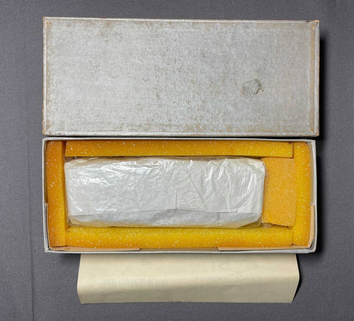 2枚目画像の状態で保管されていました。白紙で包まれナイロンで保護されています。