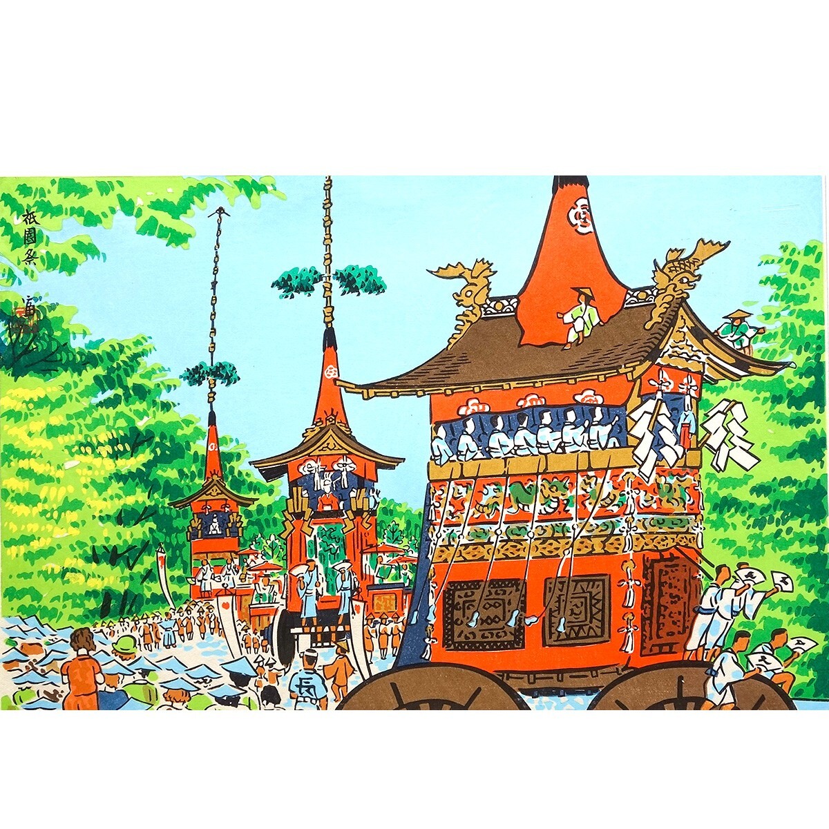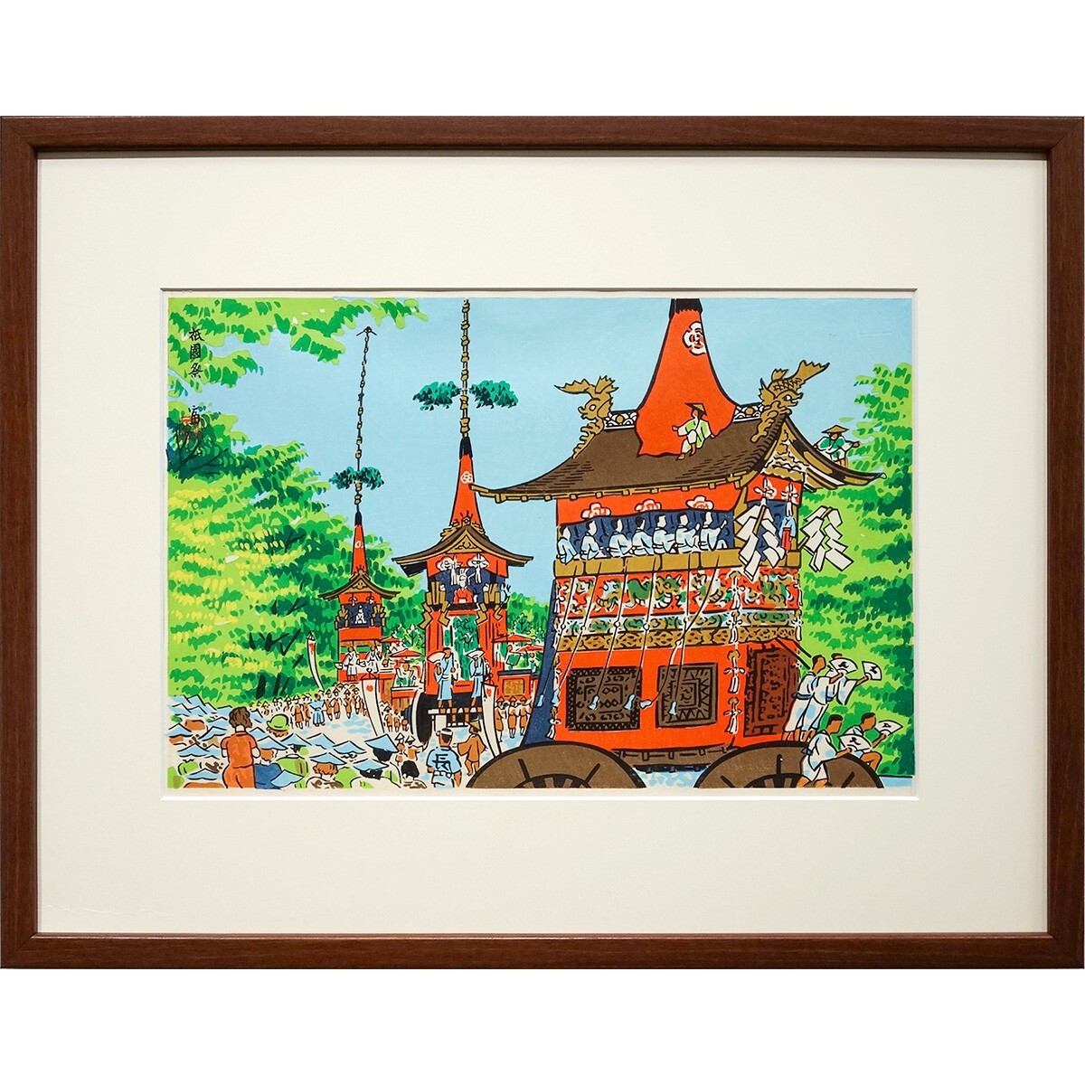 木版画 徳力富吉郎 「祇園祭 巡行」 額付き 風景画 京都 版元まつ九 夏 祭り 山鉾 八坂神社 woodblock print 真作保証 大衣 YE440