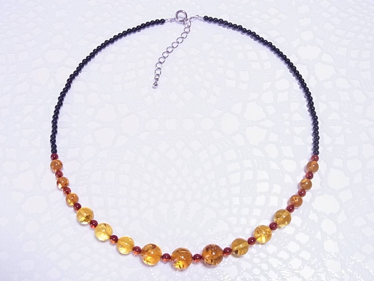 | 【数量限定販売になります】 3色の琥珀を使ったネックレスです。 近年、産出量が激減し、値段が高騰しております。 また産出国の輸出規制等によって、日本への輸入量も激減しています。 琥珀は、模造品や再生琥珀等の天然琥珀ではない琥珀が多く出回っていますが、鑑別機関の最高峰 「中央宝石研究所」 で鑑別をして、間違いない商品を供給してくれる、信用できるサプライヤーから仕入れをしています。 使用石 : 天然琥珀 10mm 8mm 4mm / ブラックカルセドニー(染色処理) 3mm 長さ : 約45cm (アジャスター5cmを含む) 幅 : 約10mm 留め金 : 引き輪式 アジャスターチェーン約5cm 地金 : ブラス メッキ : ロジウム・コーティング 重量 : 約8g (平均値) 参考小売価格 : 16000円 天然琥珀特有のグリッターと呼ばれるクラックやインクルージョンがあります。 グリッターは、個体差があります。 誠に勝手ながら、土、日曜日、祝日、長期休暇は、 発送業務をお休みさせていただいておりますので、ご了承下さい。 よろしくお願い致します。 【備考】 画像はサンプル画像ですが、サンプル画像と遜色のない商品をお送りします。 出来るだけ実物に近い画像を使っておりますが、実物と多少色が異なる場合がありますので、ご了承下さい。 ノークレーム、ノーリターンでお願い致します。 | |||