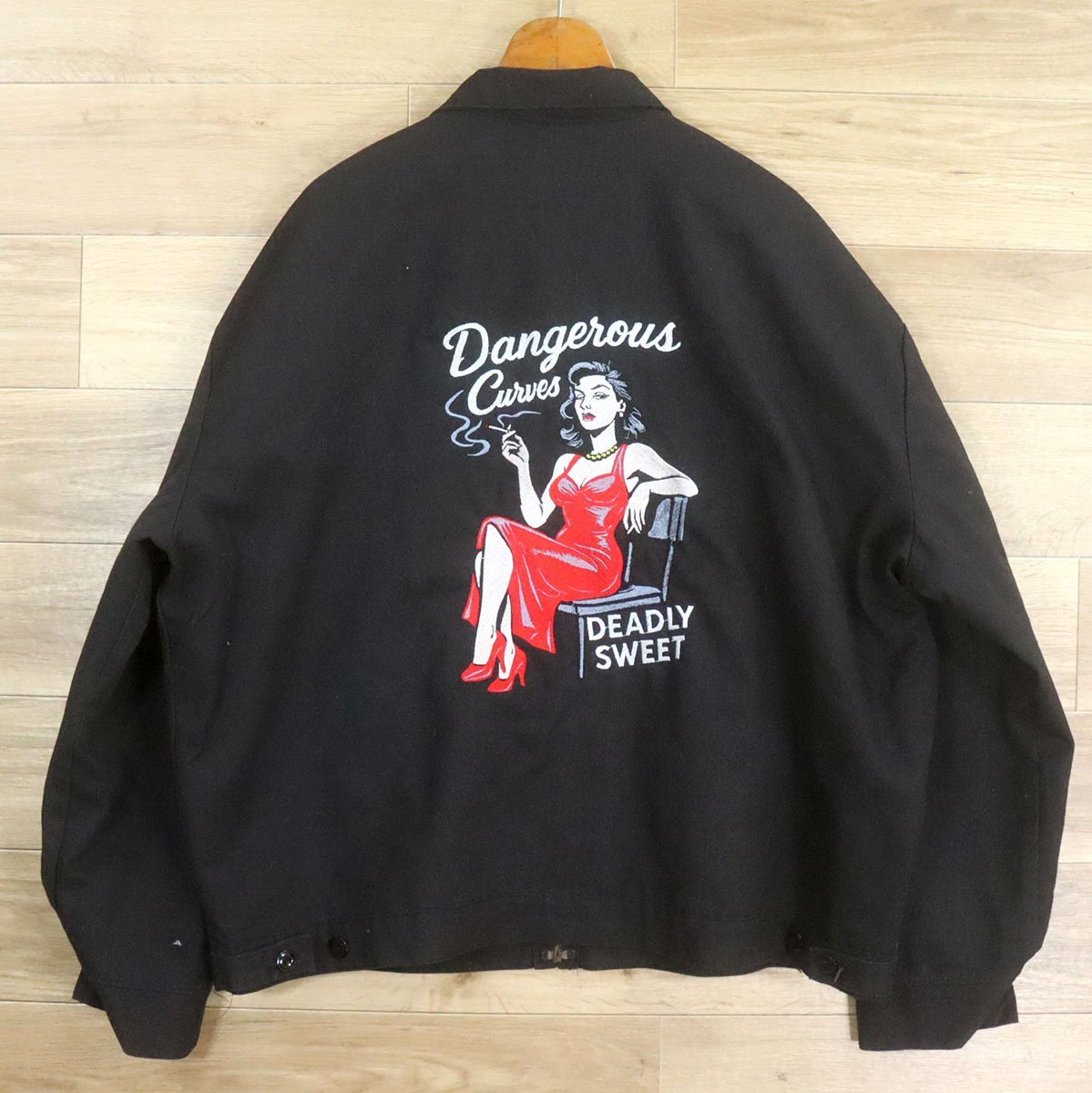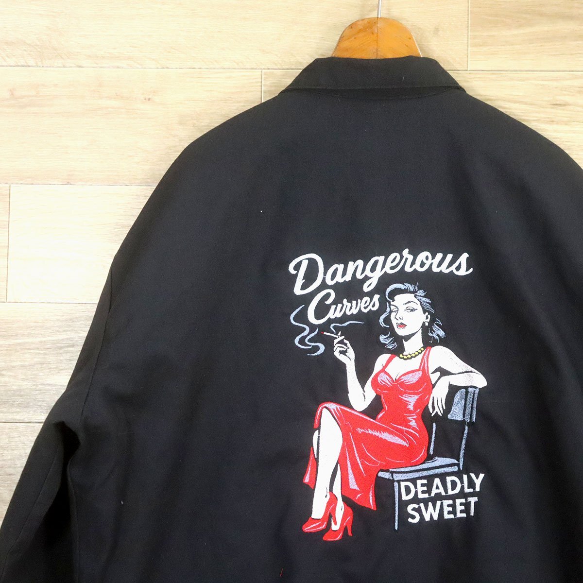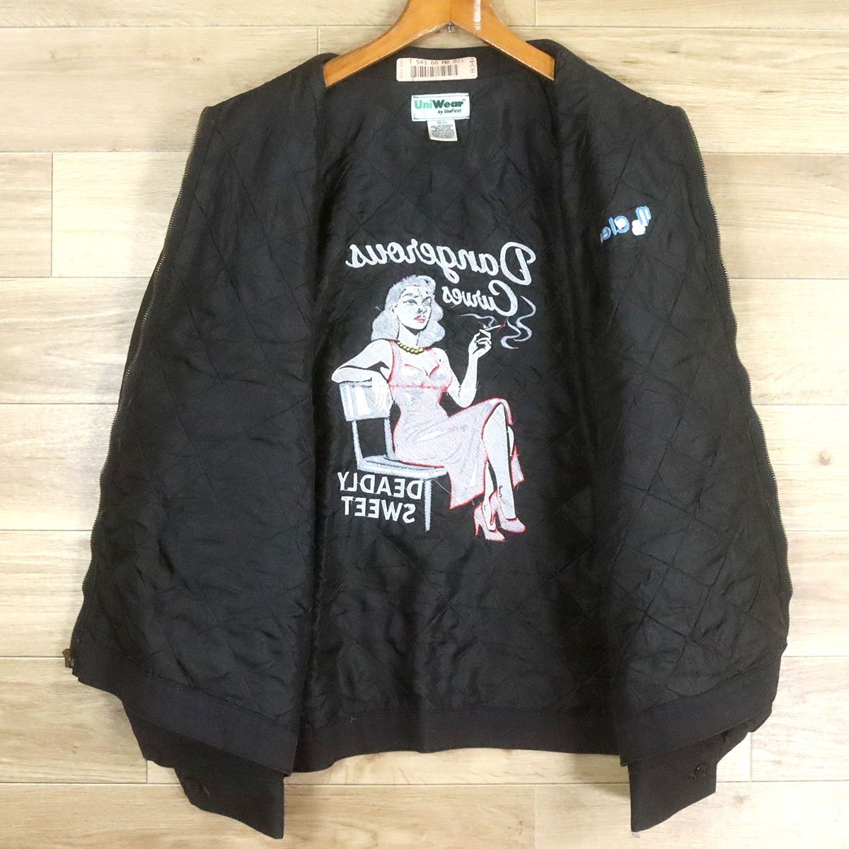 A2T/O9.23-2 アメリカ古着 UniWear ワークジャケット XXL バック刺繍 Dangerous 喫煙女子 ピンナップガール