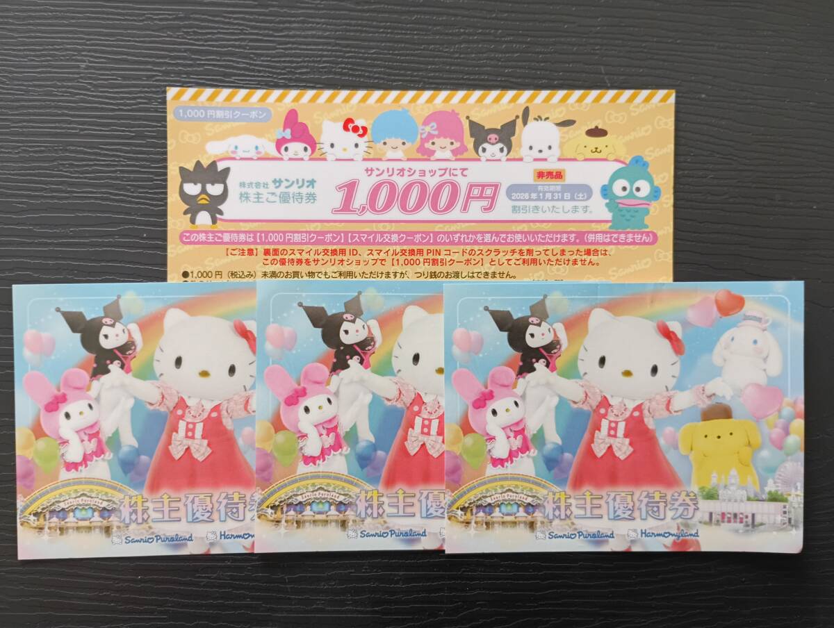 ◯サンリオの株主優待券3枚とサンリオショップ1000円割引券です。