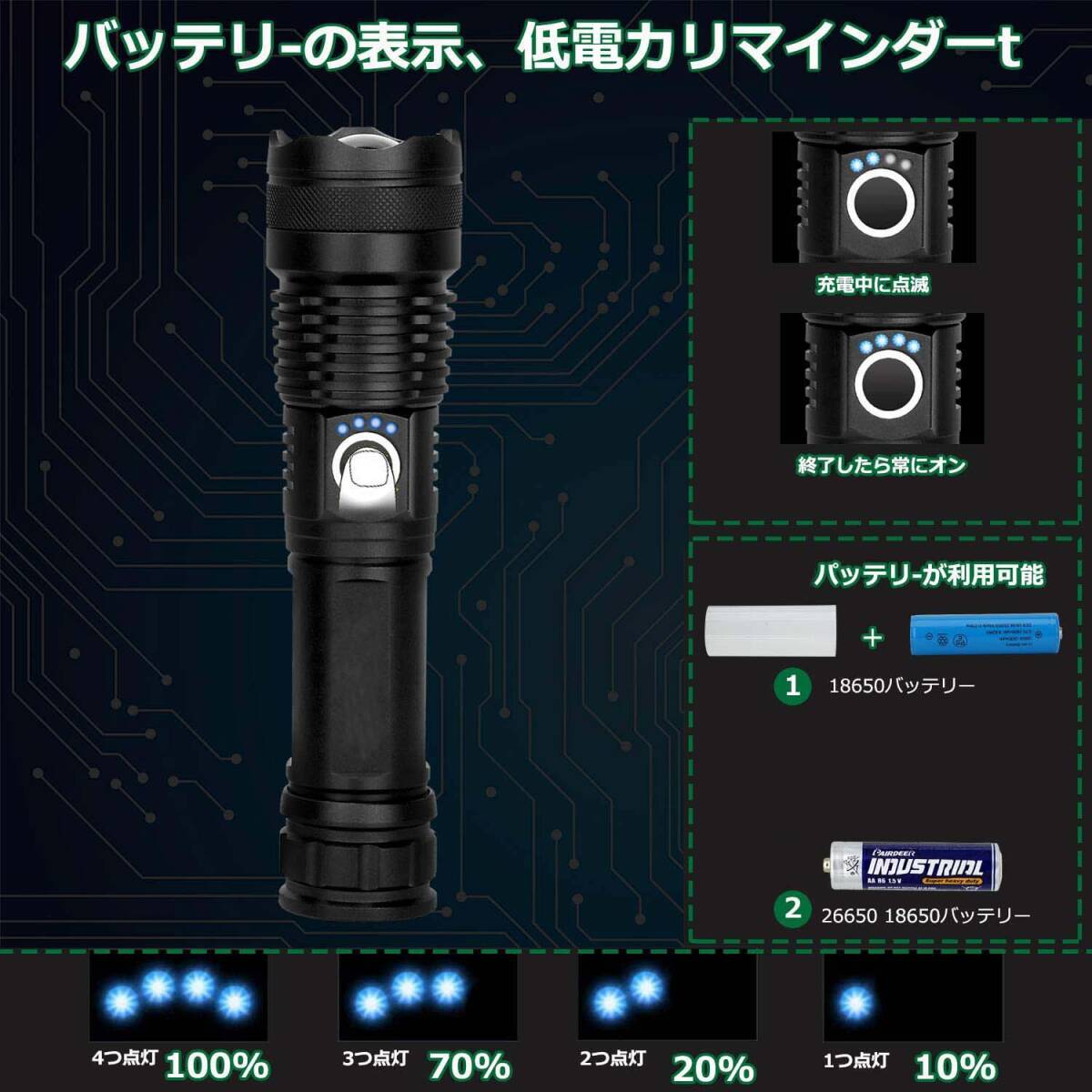 懐中電灯 充電式 LEDライト 超高輝度 合金製 5モード調光 18650付き