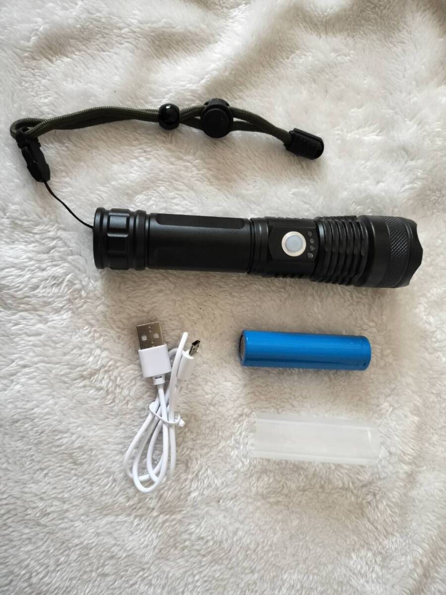 1.懐中電灯×1、 2.USBケーブル×1 3.大容量18650充電式リチウム電池×1
