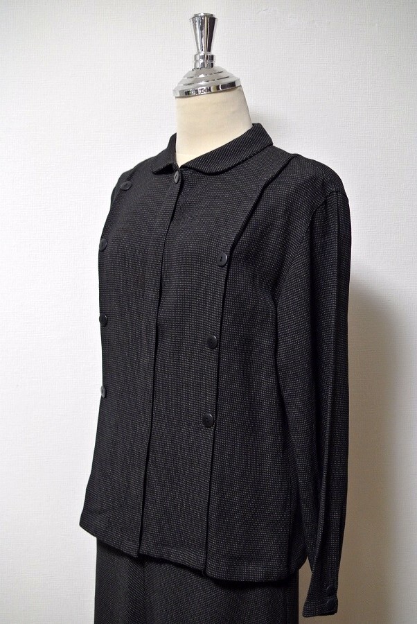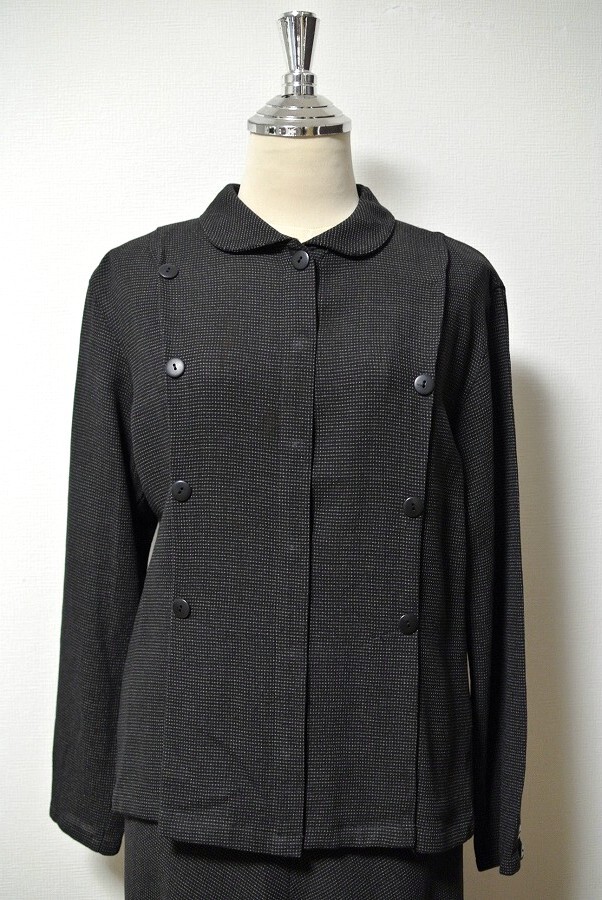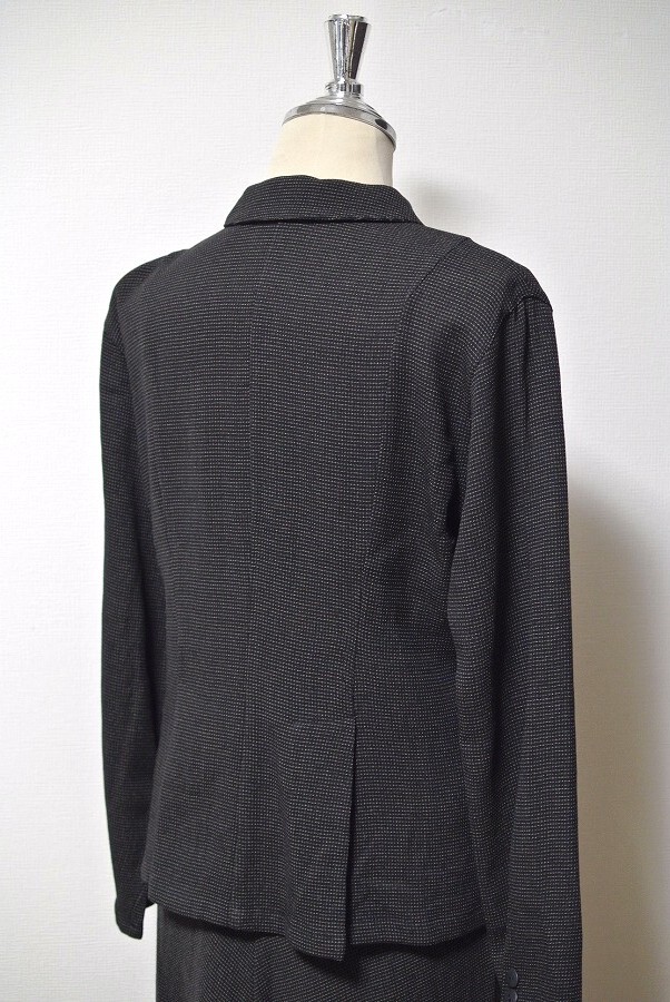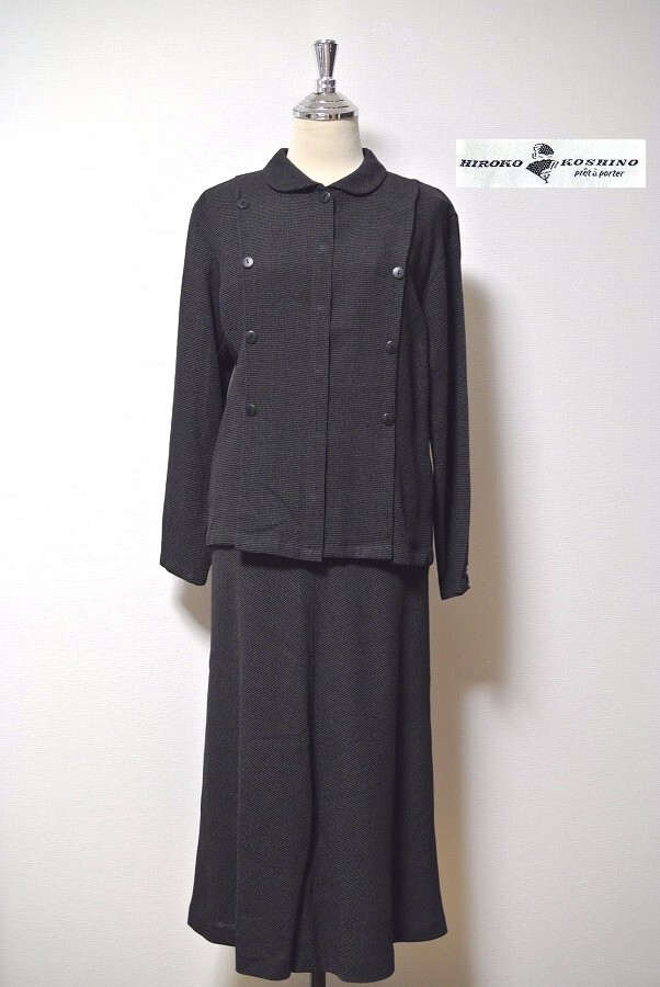 日本を代表するファッションデザイナー、HIROKO KOSHINO「ヒロココシノ」 プレタポルテラインのレディースセットアップです! 平成初期~90年代頃のヴィンテージアイテムで、落ち着いたデザインの中に上品さと時代を感じる雰囲気が魅力。 シンプルなジャケットにロング丈のスカートを合わせたクラシカルなシルエットは、オケージョンやフォーマルシーンにも対応可能。 バブル~平成初期のファッションを象徴する一着で、ファッション史の資料、コレクションとしても価値の高い逸品です。 色はブラックベースに格子状のように織り込まれた凝った生地です。 チャコールっぽくも見えます。 こちらのモニターでは、ほぼ実物どおりの色合いに写っていると思います。 「ヒロココシノ インターナショナル株式会社」 品番:RHHJK-03360 ※インナーは写真撮影用サンプルになります。 |
