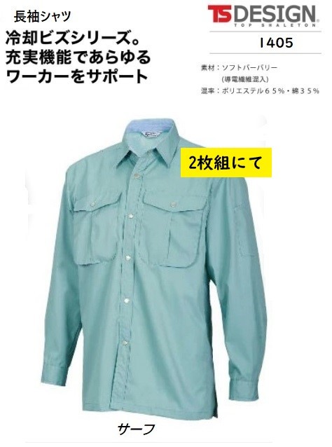 ビックイナバ特価◇TSDESIGN 1405[年間]長袖シャツ【32サーフ・Lサイズ】ソフトバーバリー生地・定価1枚9130円の品、2枚即決2980円