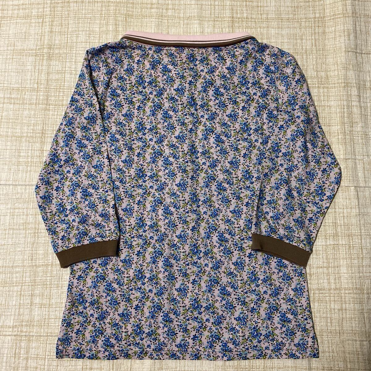襟ぐりは広めで、ピンクの襟が小さめのフェミニンなデザインになっています。