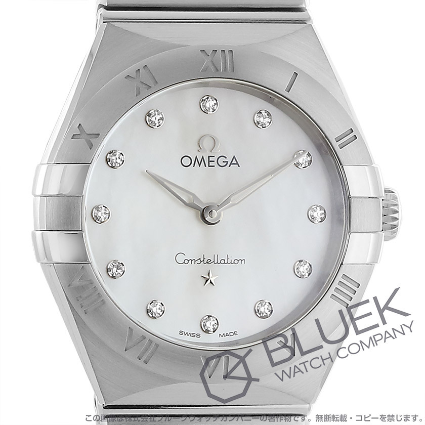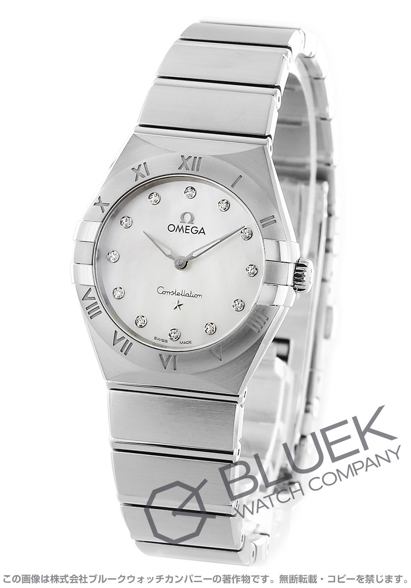 12粒のダイヤモンド煌めくホワイトシェルダイヤルも爽やかな厚さ8ミリの28ミリケース&一体型ブレス小ぶりなサイズも女性らしいコンステレーションは、シンプルで洗練されたデザインに一流ブランドの高級感を香らせて使い勝手に優れるオメガ人気のタイムピース。12時のオメガマークや6時の星、スケルトン指針とダイヤモンド台座も18Kホワイトゴールドで仕上げられて豪華です。中でもローマ数字刻むベゼルや全体のツヤを抑えたブラッシュ仕上げにベゼル“4つの爪”の光沢が手元でキラリと光を反射させるこのモデルは、プッシュ式の両開きバックルも魅力。都会的で洗練されたデザインが女性の手元を知的に彩ります。 |