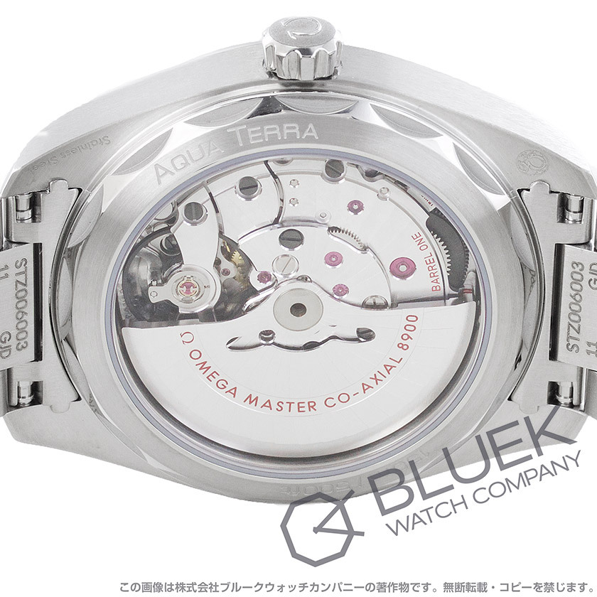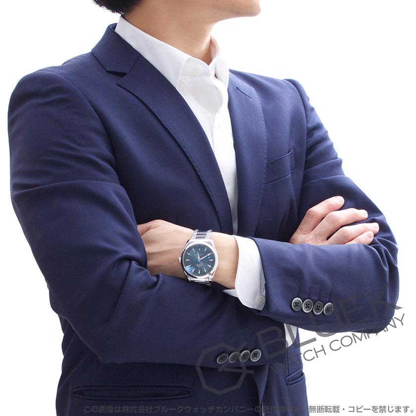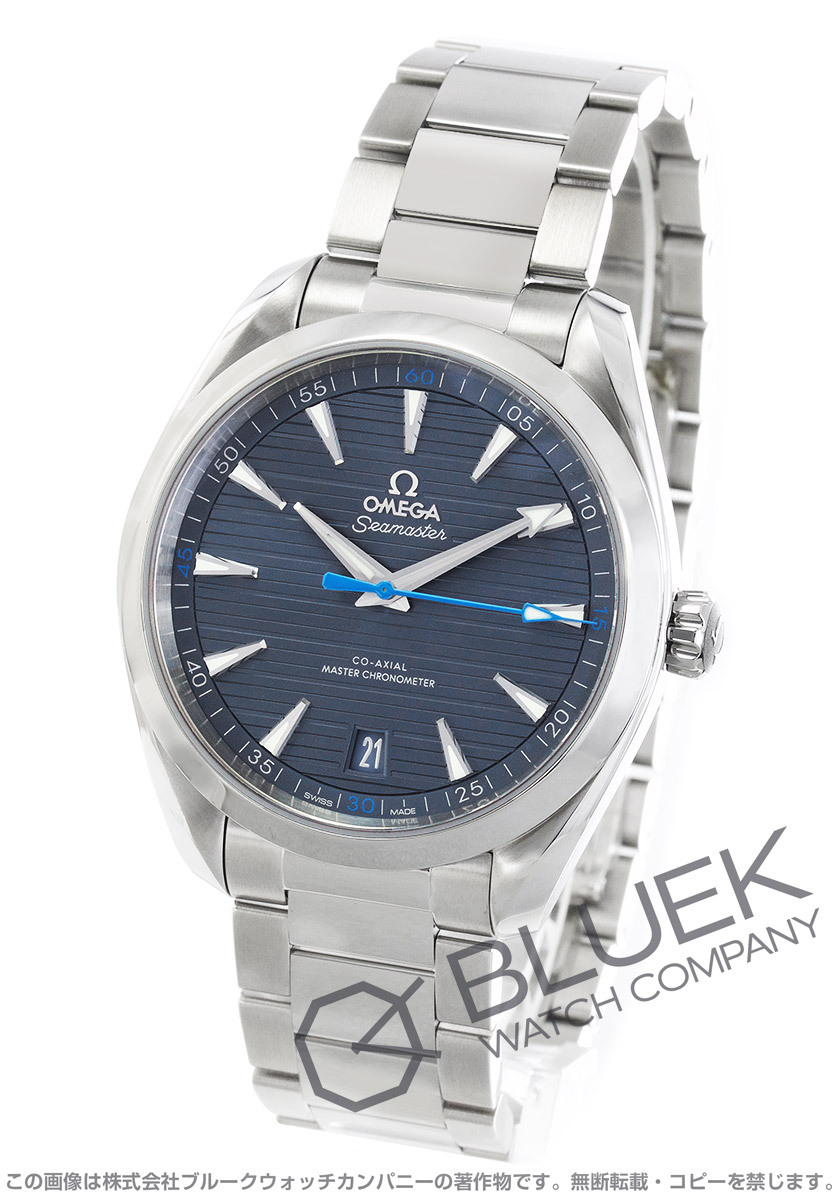 横ストライプのブルーダイヤルにライトブルーの秒針を備えたアクアテラは、実用性が高くスポーティで洗練されたデザインが人気のタイムピース。15000ガウスの高耐磁性能を誇るマスタークロノメーター(METAS)認定コーアクシャルキャリバー8900(60時間パワーリザーブ)を搭載し、ケース裏から機械が鑑賞できるシースルーバックも魅力。シルバーの指針&くさびにはホワイト夜光塗料が塗布されて暗所でも視認性を発揮します。中でも実用性に優れたこのモデルは、3連ブレスのプッシュ式両開きバックルや使い勝手に優れるシンプルなデザインがオンオフ活躍します。 |