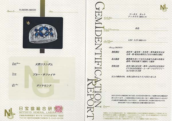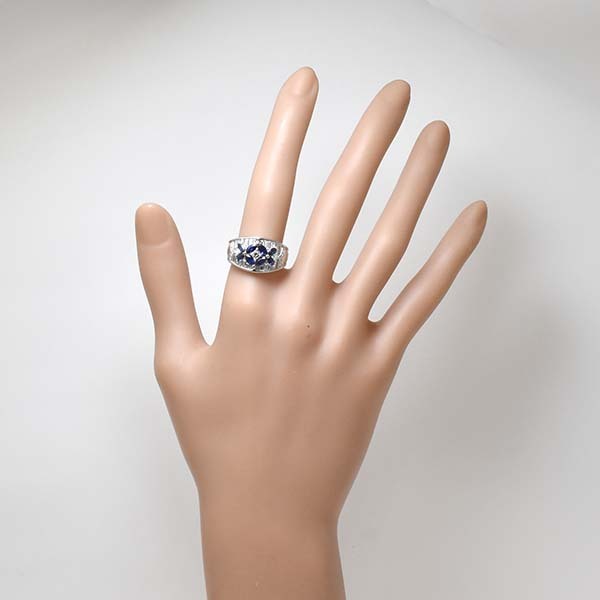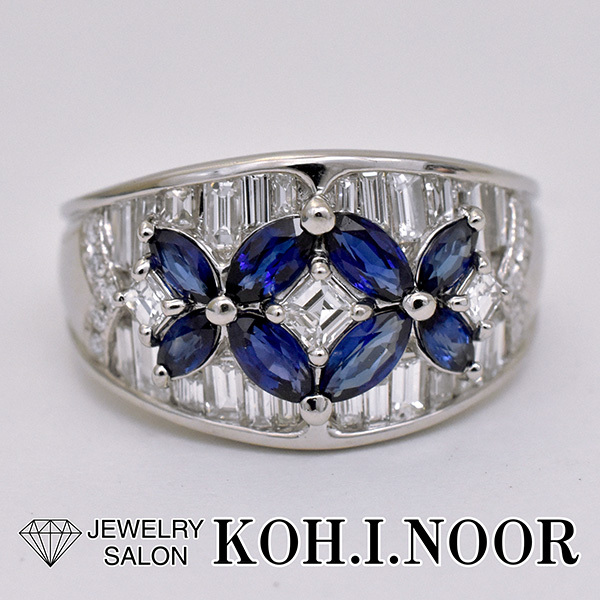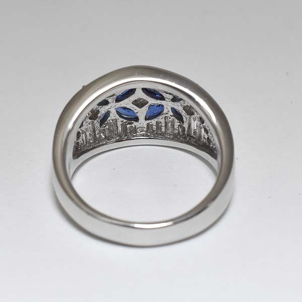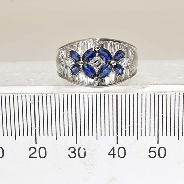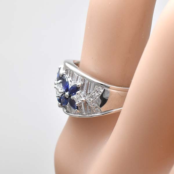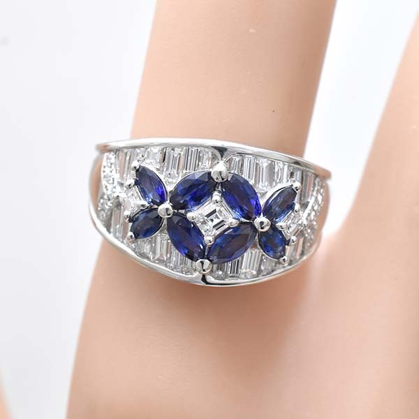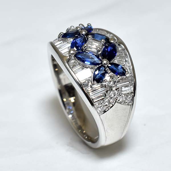 サファイアとダイヤをセットしたプラチナ製のファッションリング。