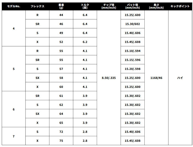 ご希望数量で落札後、ご希望のシャフト重量・フレックスをご指定下さい