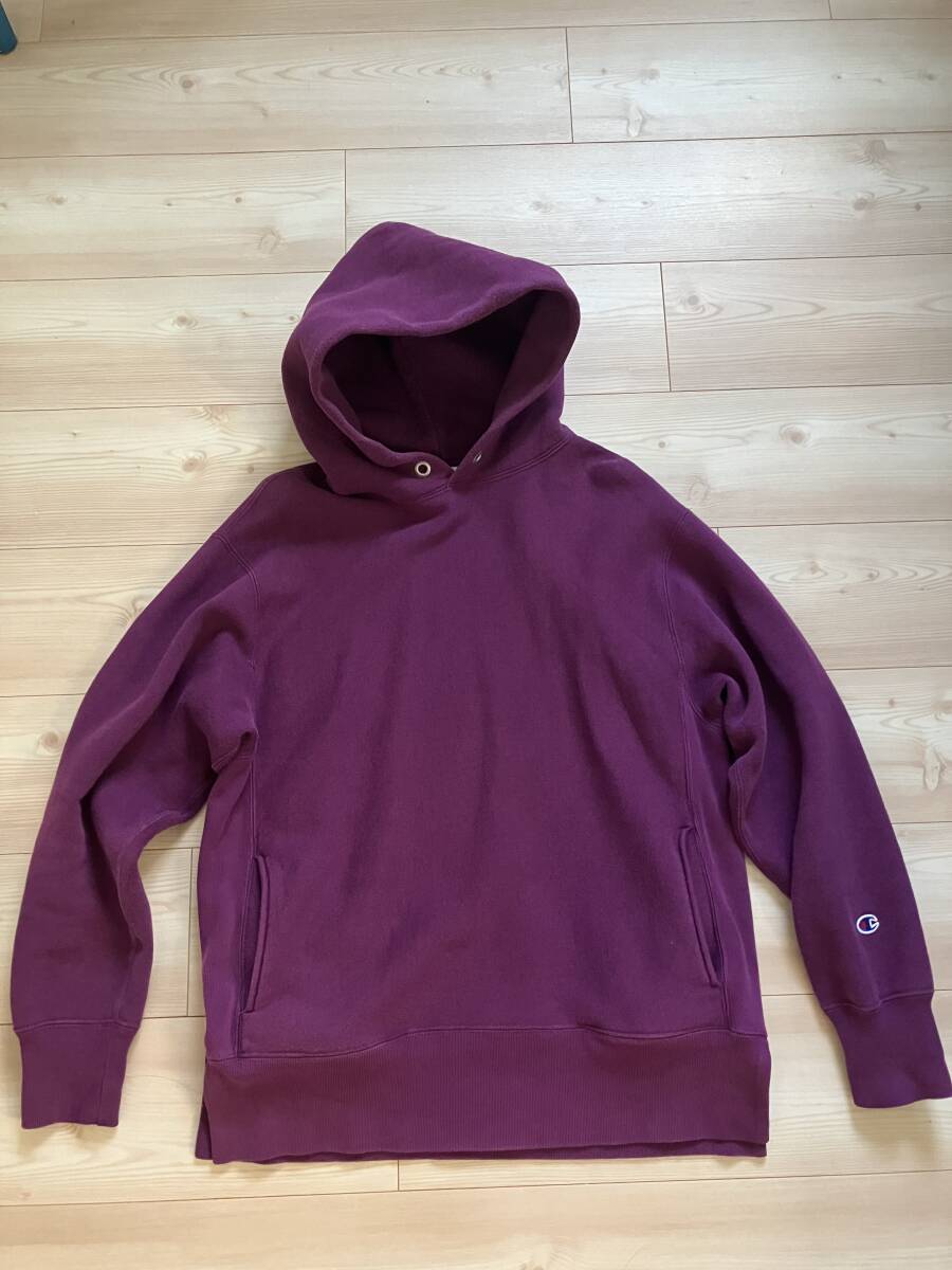 Champion チャンピオン Reverse weave リバースウィーブ スウェット パーカー 復刻タグ 青タグ 紫系 サイドポケット スリット Mサイズ