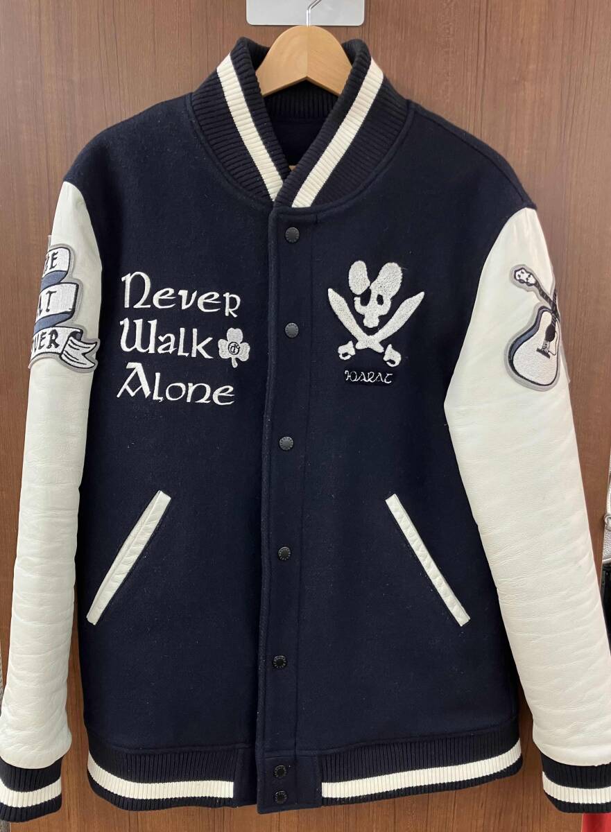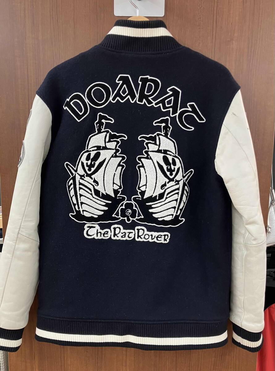 ブランド名:DOARAT 品名:スタジアムジャンパー 型番:DAR-J-266 表記サイズ:ワンサイズ(Lサイズ相当) 着丈:約71cm 袖丈:約63cm 身幅:約52cm 肩幅:約49cm サイズ(約cm)は平置きの状態で測っています。 カラー:ネイビー 素材:ウール70% ポリエステル15% ナイロン7% アクリル8% 袖 牛革 付属品:なし 状態:若干の汚れ、シミ有ります。写真でご確認ください。 |