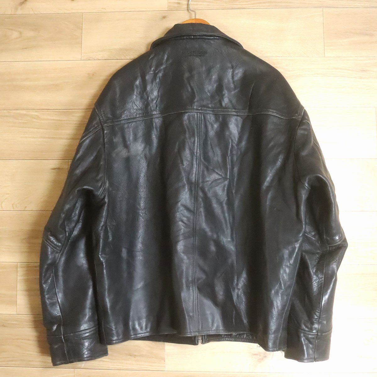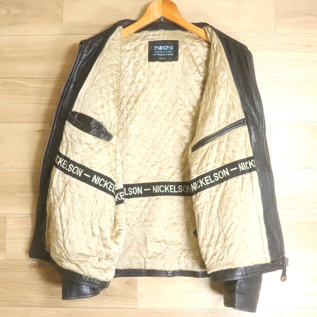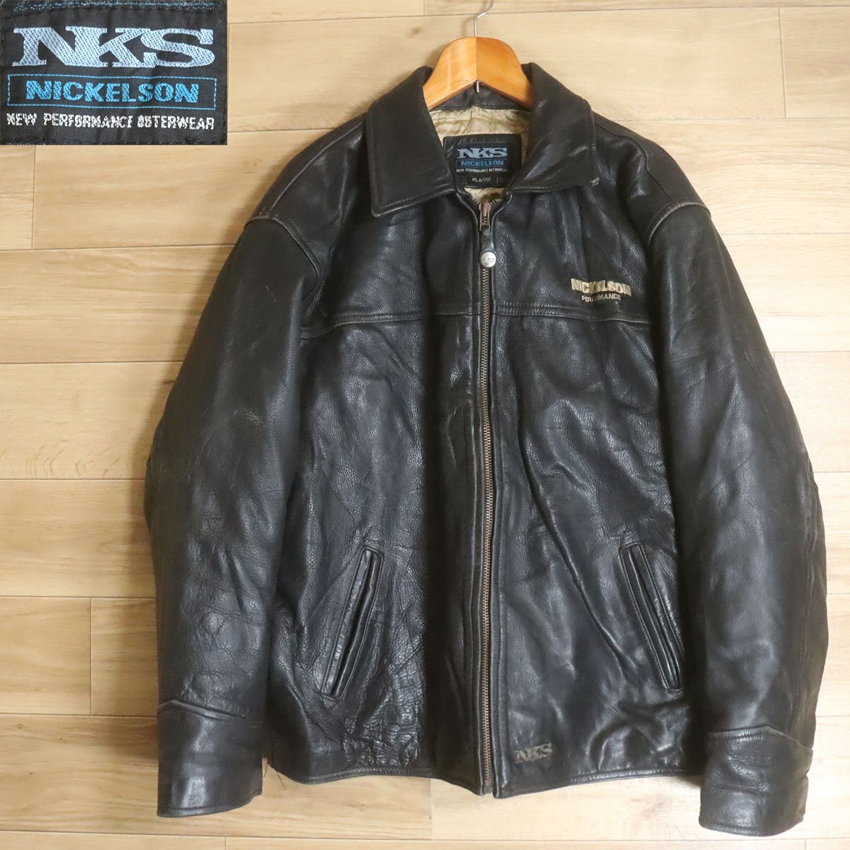 L8R/R6.27-1 NICKELSON レザージャケット 本革 レザーブルゾン 革ジャン 皮ジャン 刺繍 裏キルティング XL ブラック