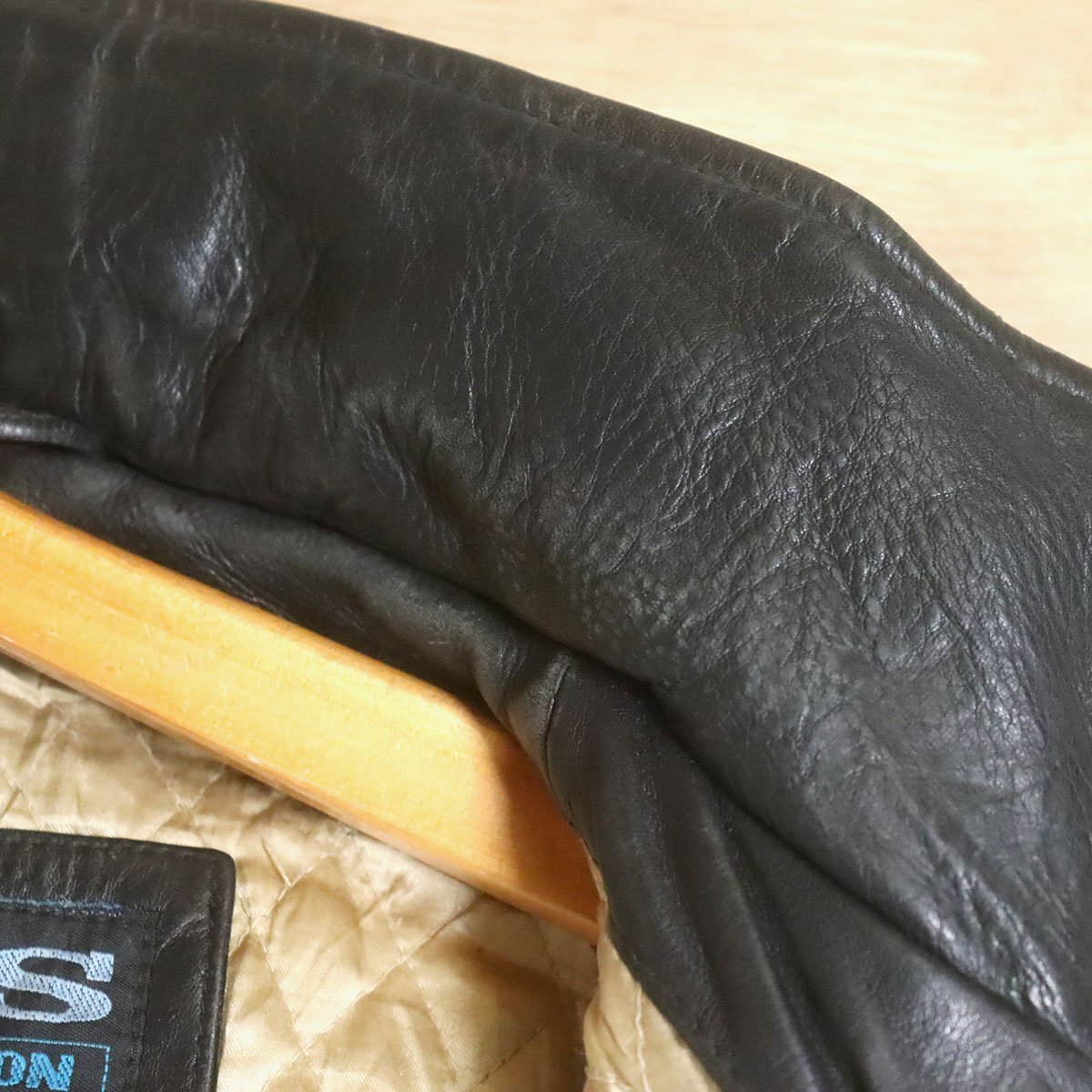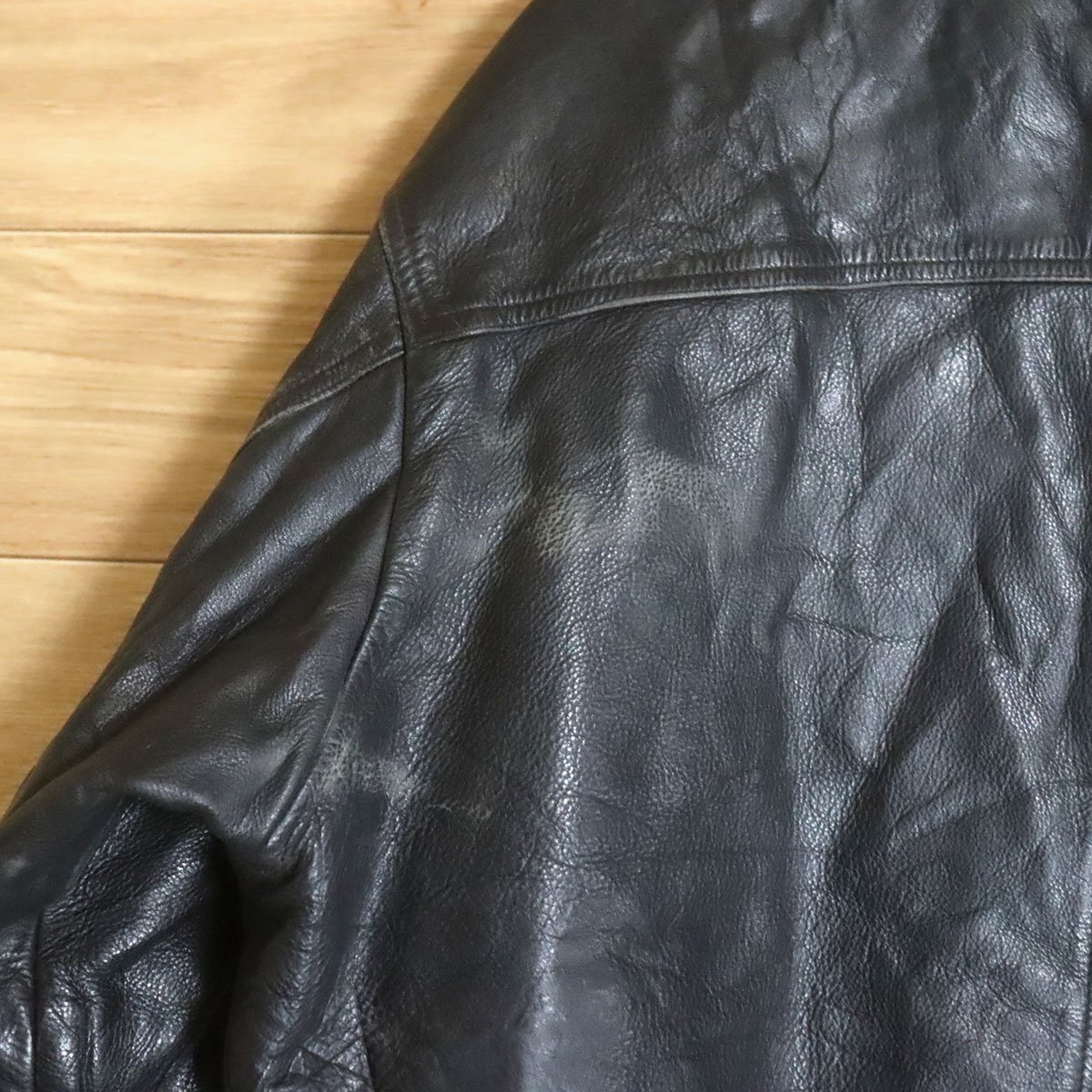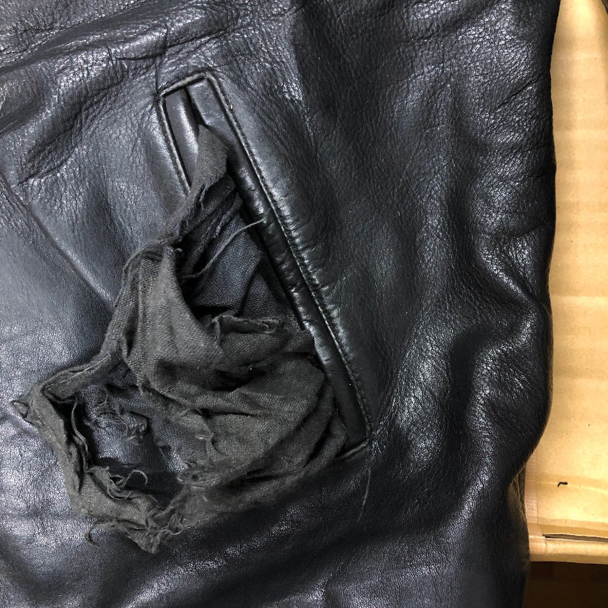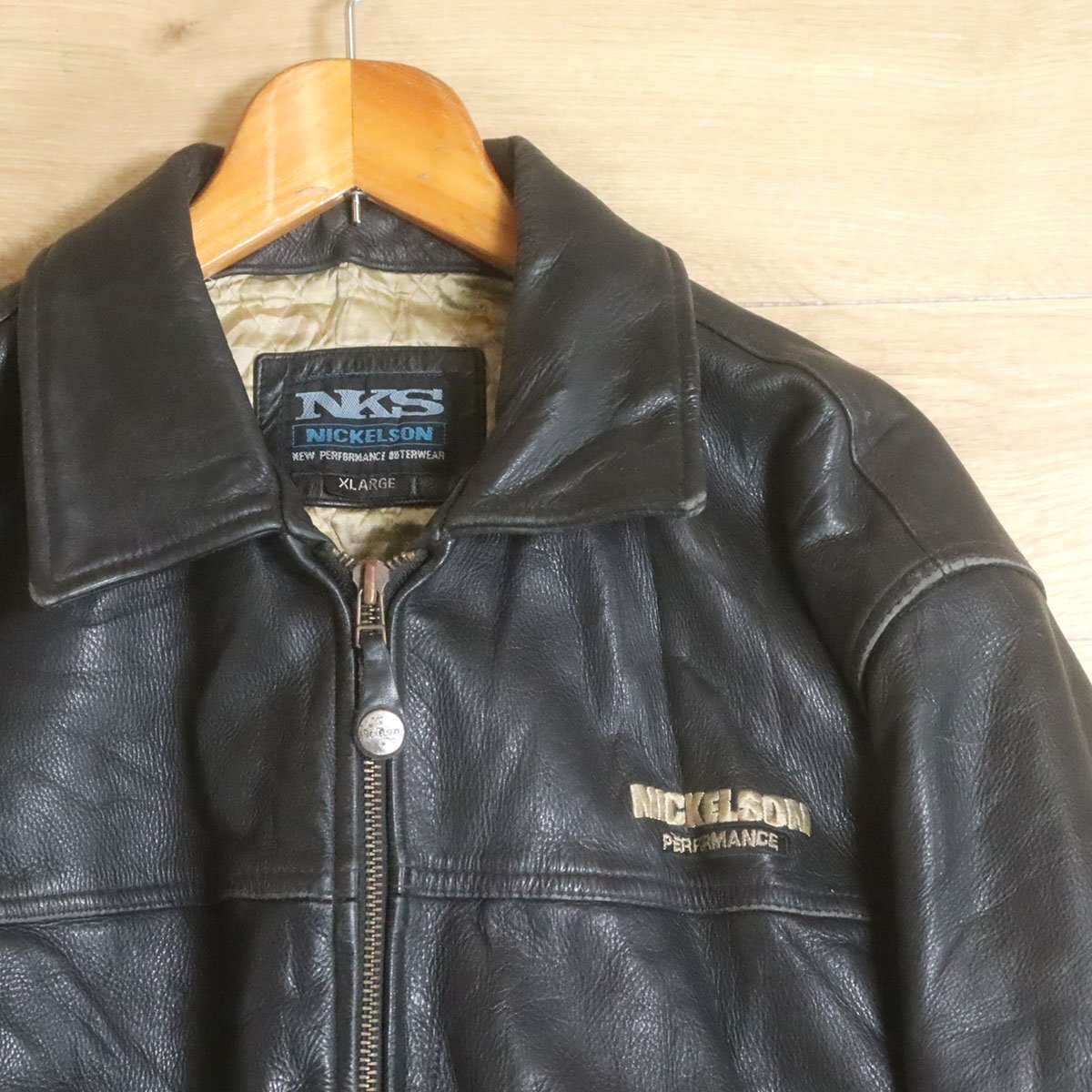 L8R/R6.27-1 NICKELSON レザージャケット 本革 レザーブルゾン 革ジャン 皮ジャン 刺繍 裏キルティング XL ブラック