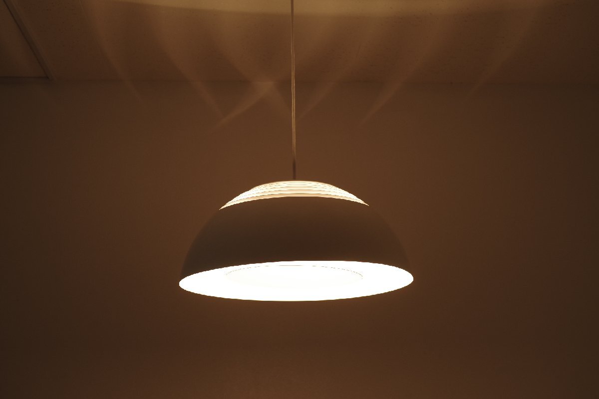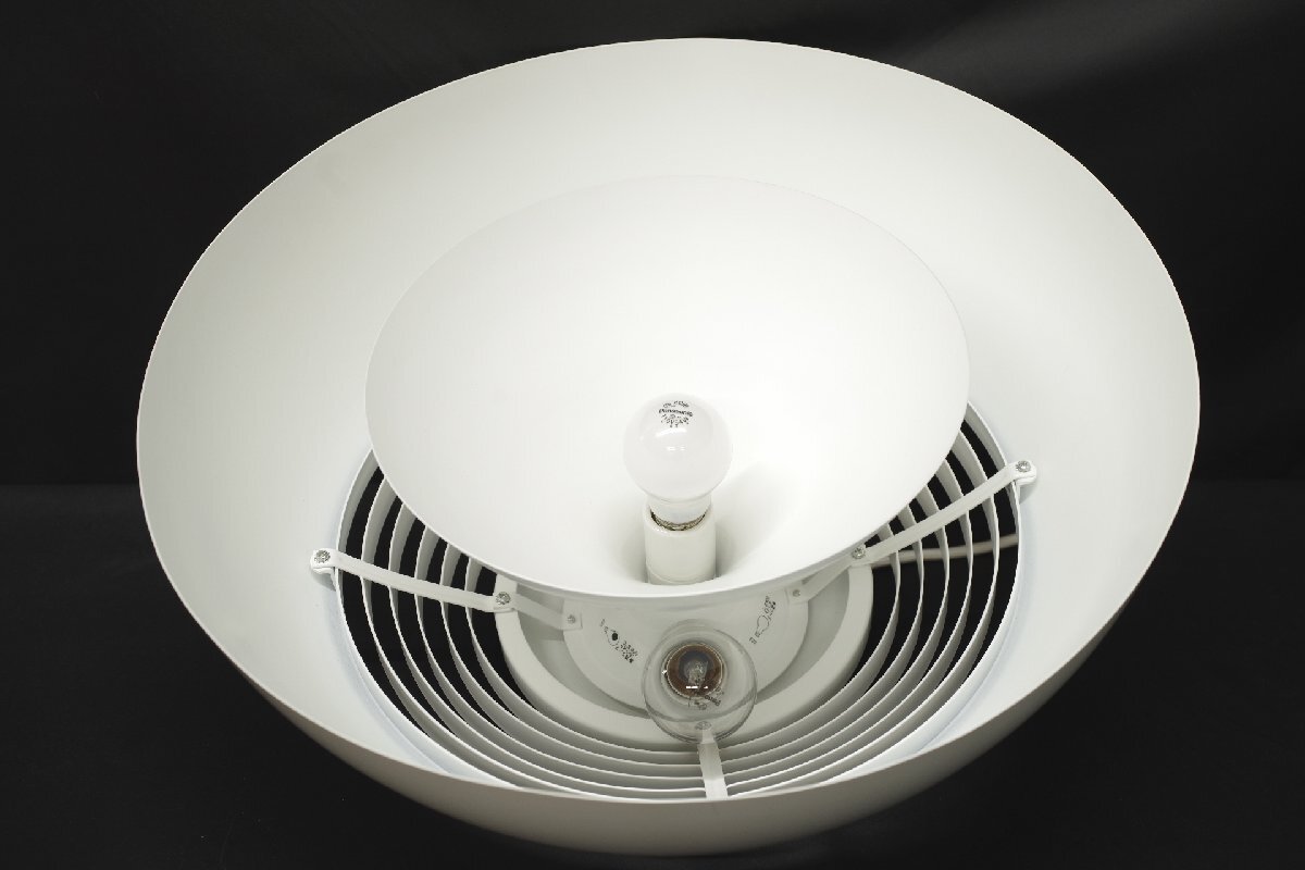 【商品紹介】 ルイスポールセンより AJ ロイヤル 500ペンダントランプのご紹介です。 「AJロイヤル」は、コペンハーゲンのSASロイヤルホテル(現ラディソンコレクション)のために1957年にアーネ・ヤコブセンがデザインしたものの一つです。 ミニマリスティックで特徴的なフォルム、そして完璧な光という、ヤコブセンのデザイン・スピリットを空間に提供します。 柔らかい反射光を生むため、シェードの内側は白色塗装されています。 AJ ロイヤルが放つクラシカルかつグラフィカルなデザインとシャープな魅力は少しも失われていません。 ダイニングルームやオフィスなどを、下向きの滑らかでな光で照らし、シェードを通して上方に放たれる柔らかな光が、空間を穏やかな雰囲気で演出します。 【仕様】 ・重量:3.5kg ・電球:E26 LED電球(白熱電球60W相当)×4 ・電源:100V ・消費電力:240W ・引掛けシーリング取付型 ※電球は付属いたしませんので、ご落札者様で用意をお願い致します。 是非この機会にご検討ください。 【コンディション】 こちらの商品は使用品です。 ・シェードに微細な擦り傷、線キズ、取り切れない汚れ等がございます。 ・プラグカバーは経年により外側の変色がございます。 ※清掃、撮影時に目立つ箇所を抜粋して写真掲載しておりますが、同等の傷などがあるものとご了承ください。尚、商品ページの追加写真にて状態をご確認の上、ご検討いただけますよう、お願いいたします。 この他にも商品を多数出品しておりますので、こちらから御覧下さい。 | ||