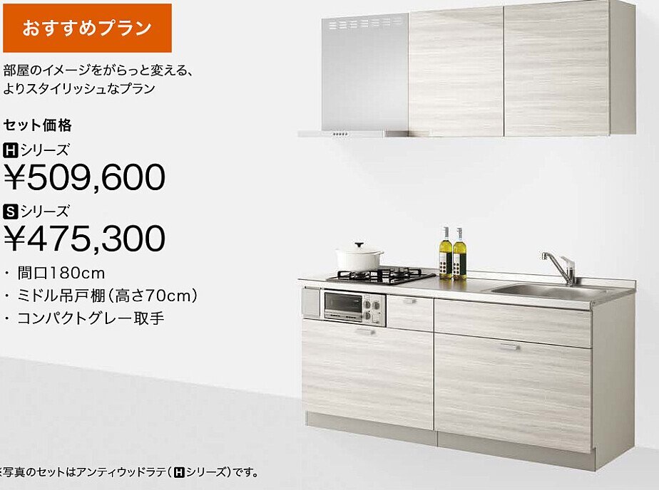 | ◎クリナップ・コンパクトキッチン『新コルティ』スライドタイプ・2口コンロ 間口1800mm・即決価格は、写真セット定価509.600円のなんと 55%OFFで252.252円【消費税込】 ◆うれしい機能がギュッとつまったコンパクトキッチンです。 ◆便利なスライド収納。 ◆お手頃価格と使いやすさを両立した、スライドタイプ。 ◆吊戸棚の高さは700㎜。 ◆扉の色は、Hシリーズ11色から選択できます。 ◆写真の扉の色は、アンティウッドラテ。上品な木目柄。 ◆ワークトップは、ステンレスです。 ◆フラットスリムレンジフードのシロッコファンが付いています。 ◆W530のシンク、2口コンログリル付。 ◆シンクの位置は、右側・左側から選択してください。 ◆CAボードは価格に含まれていません。 | |