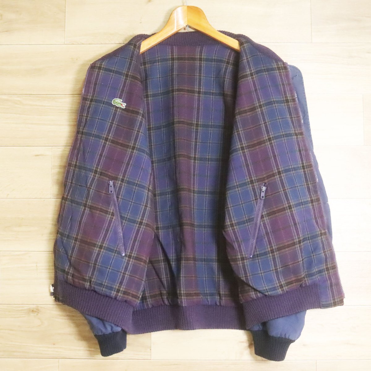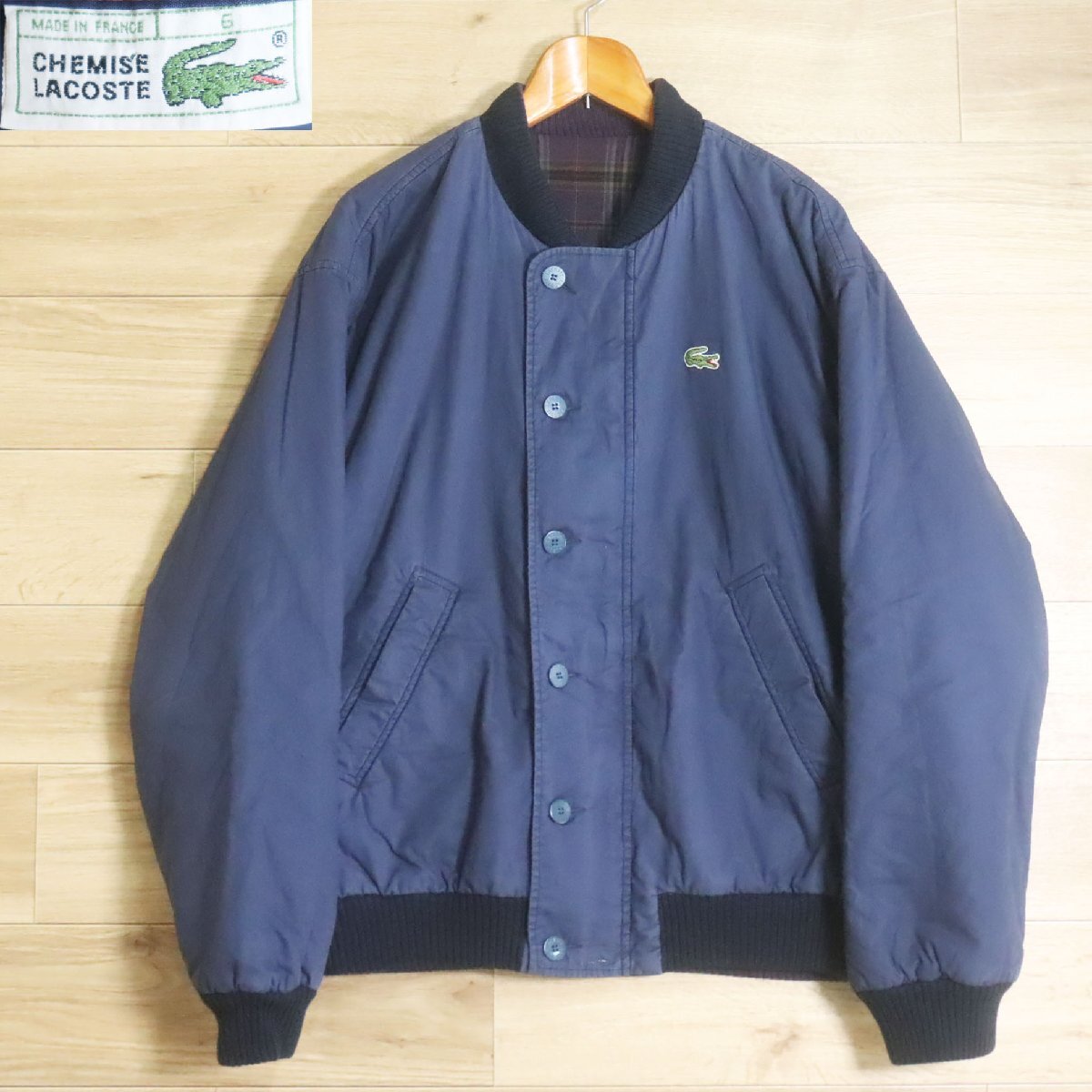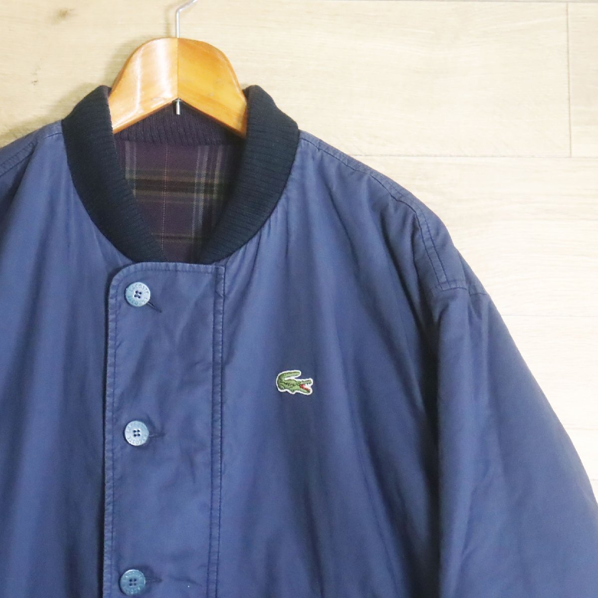 N10R/R8.5-4 フランス製 LACOSTE ラコステ リバーシブルジャケット ブルゾン コットン チェック柄 ジャンパー L ユーロ古着