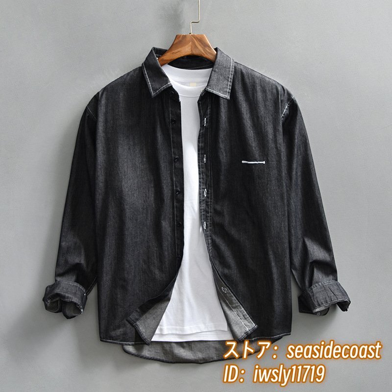 入手困難★デニムジャケット メンズ 春秋 長袖シャツ ヴィンテージ デニムシャツ アフター 個性 カジュアル 心地良し 通勤 ブラック M