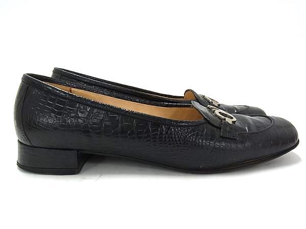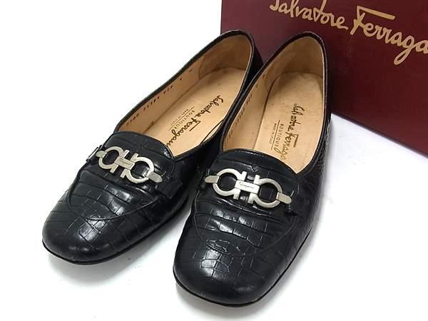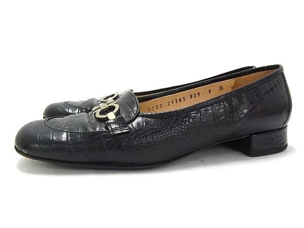 Salvatore Ferragamo フェラガモ ダブルガンチーニ クロコダイル型押しレザー パンプス 靴 シューズ レディース ブラック系 DI8845