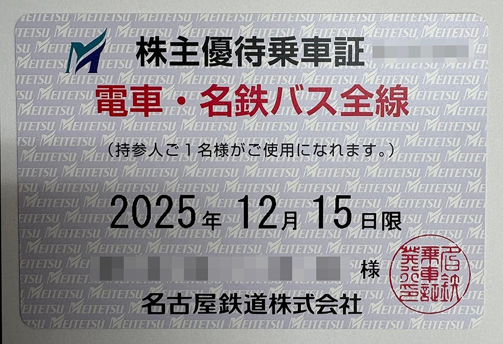 出 品 商 品 | 名古屋鉄道株式会社 株主優待乗車証 電車・バス全線 1枚 |