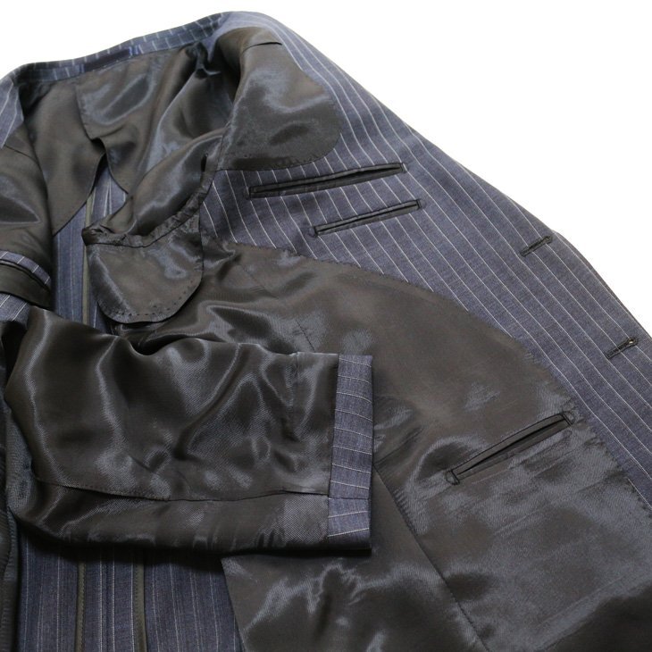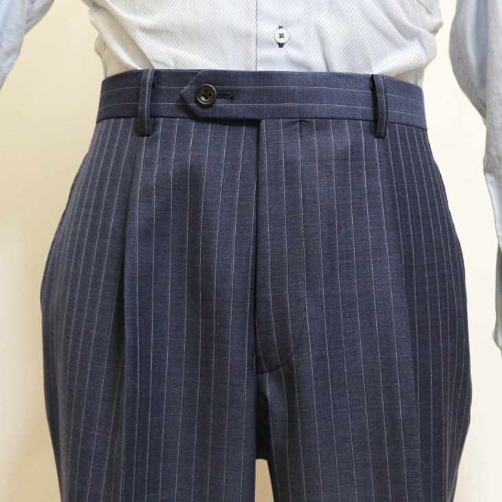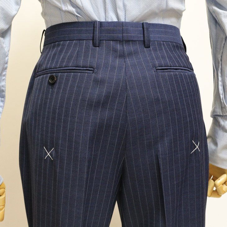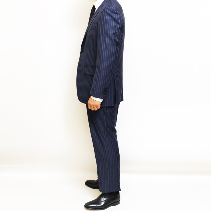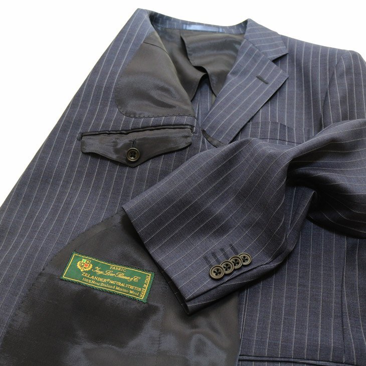 (上着)AMFステッチ:ラペル・胸ポケット・フロントポケットのフラップ 袖口重ね4つボタンX止め、袖口裏額縁仕上げ、フロントポケット両玉縁で サイドは閂+Dカン補強が入ります。 黒水牛ボタン:袖、フロント上着の内ポケット、ズボンフロント、後ろポケット 上着の内側は、本台場、ピンポンステッチ、汗止め、総パイピング補強 上着の見えない内側の仕様は、各部を接着芯にて補強し毛芯を据えた ラペル毛芯仕様、肩パットは近年では薄手の3mm厚です。 (ズボン)ワンタック、斜めポケット、チョーシック、フロント持ち出し、膝裏 生産国:日本製(国内オーダー工場にて一貫生産) |