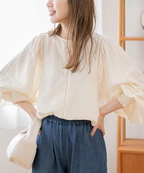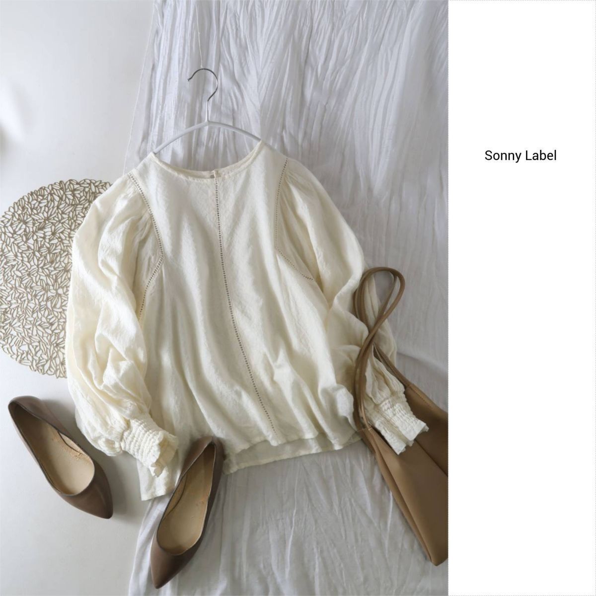 2023AW☆サニーレーベル Sonny Label/アーバンリサーチ☆インド製☆洗える パフスリーブコットンジャガードブラウス Fサイズ☆A-O 5217