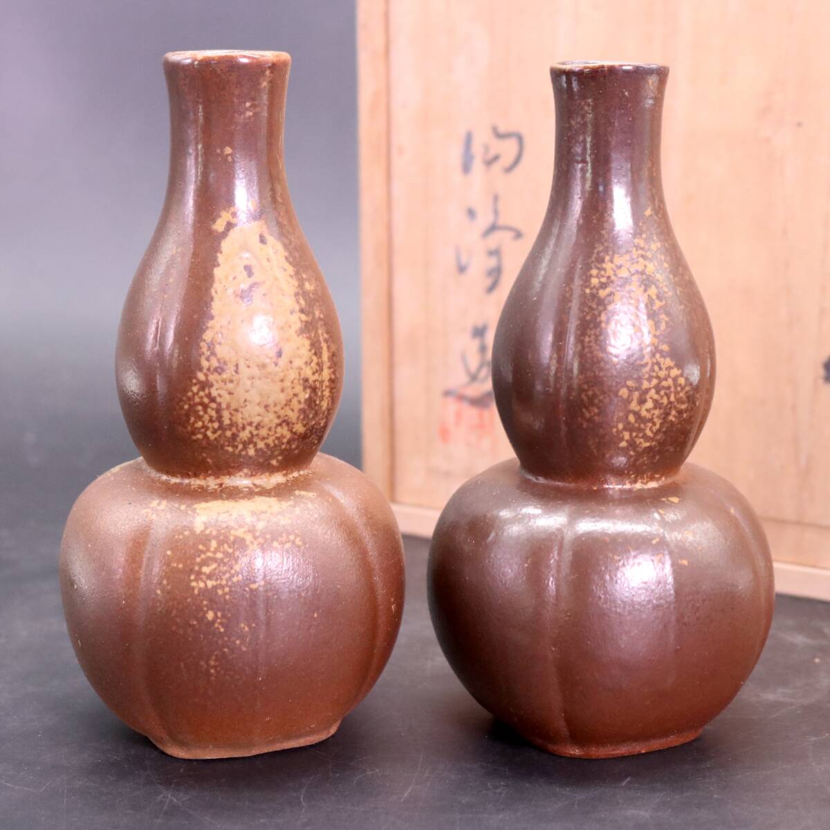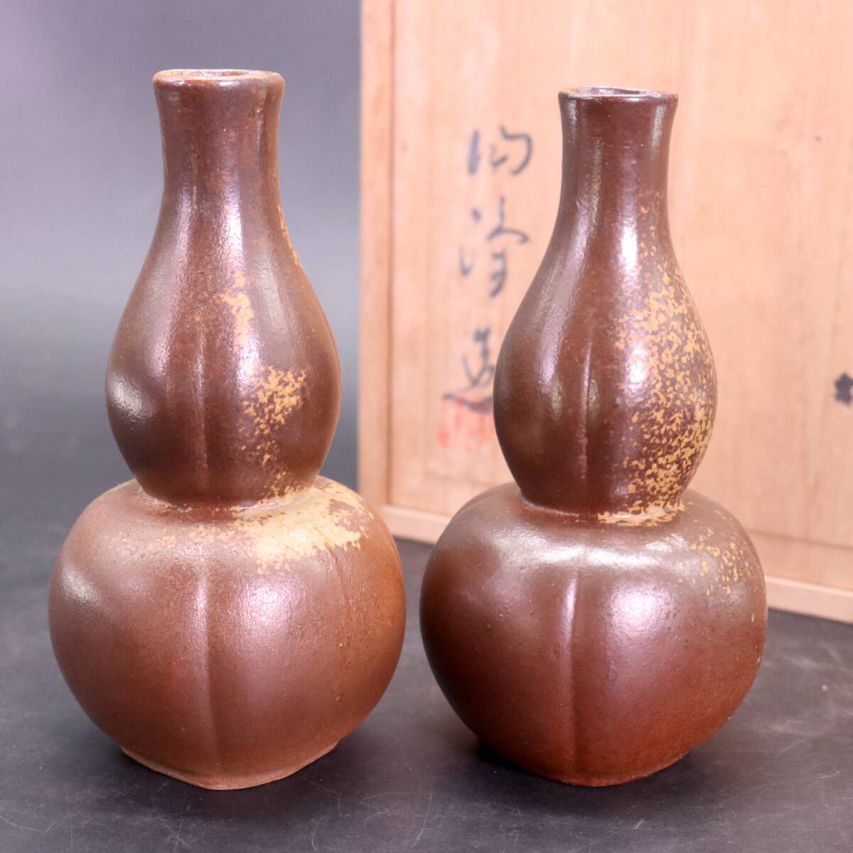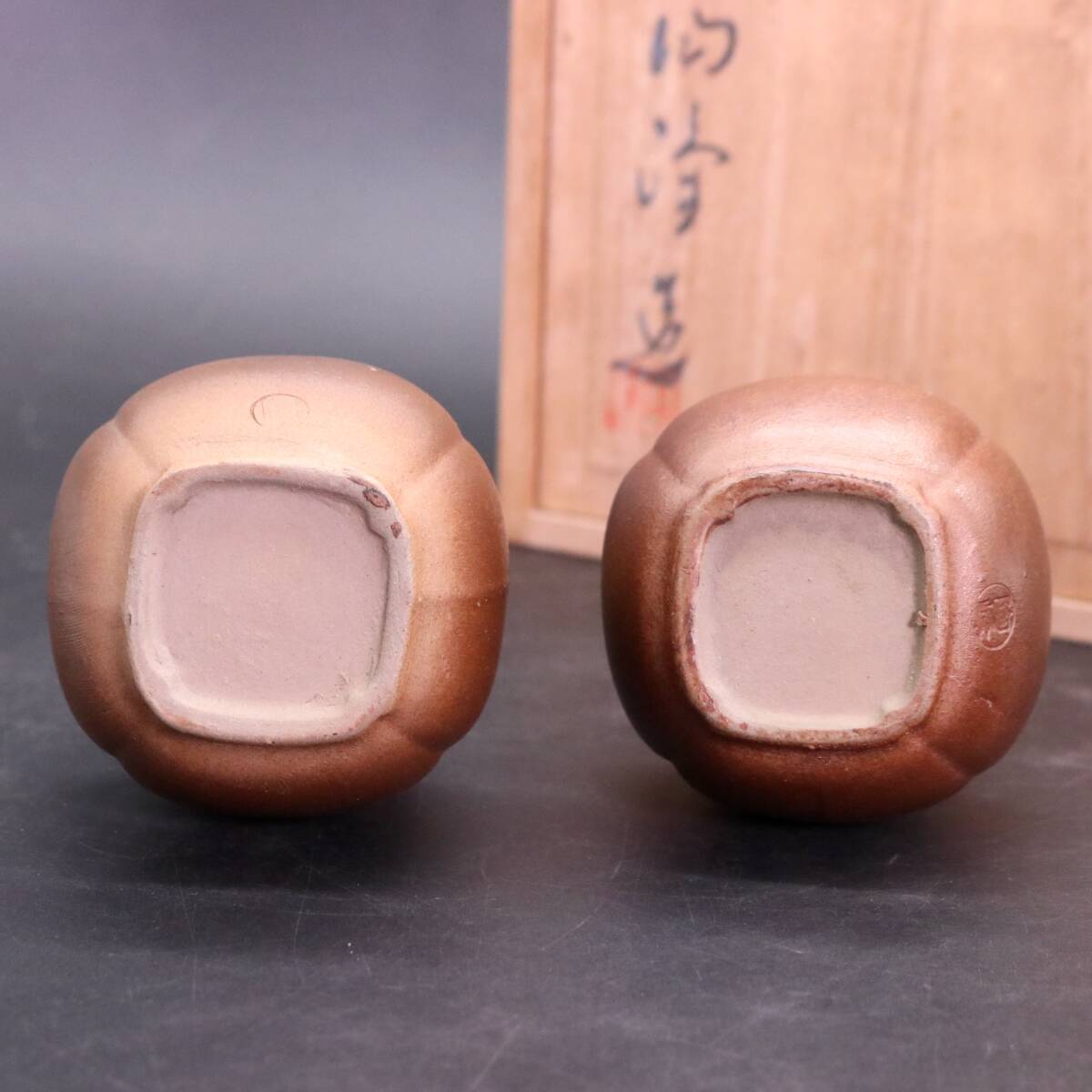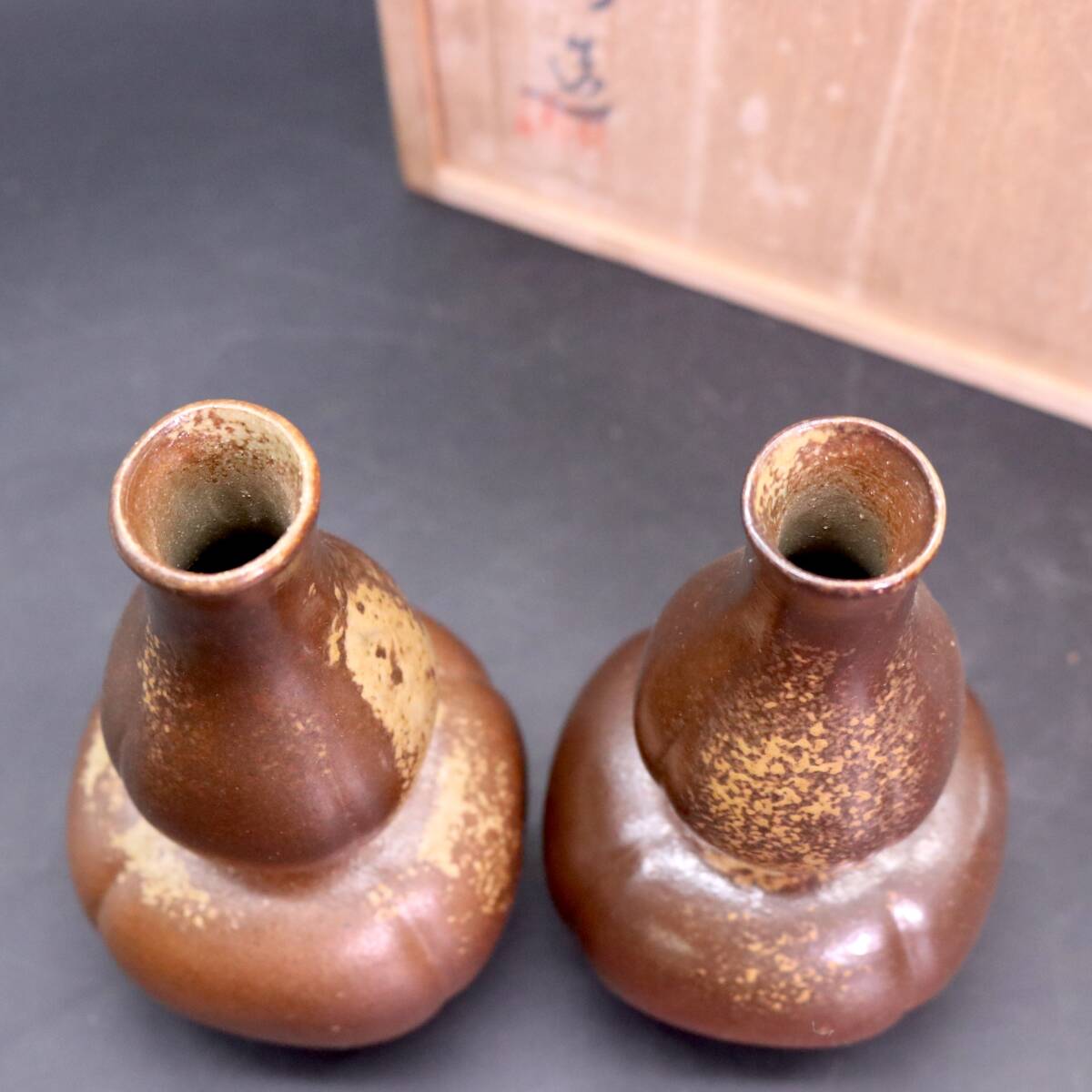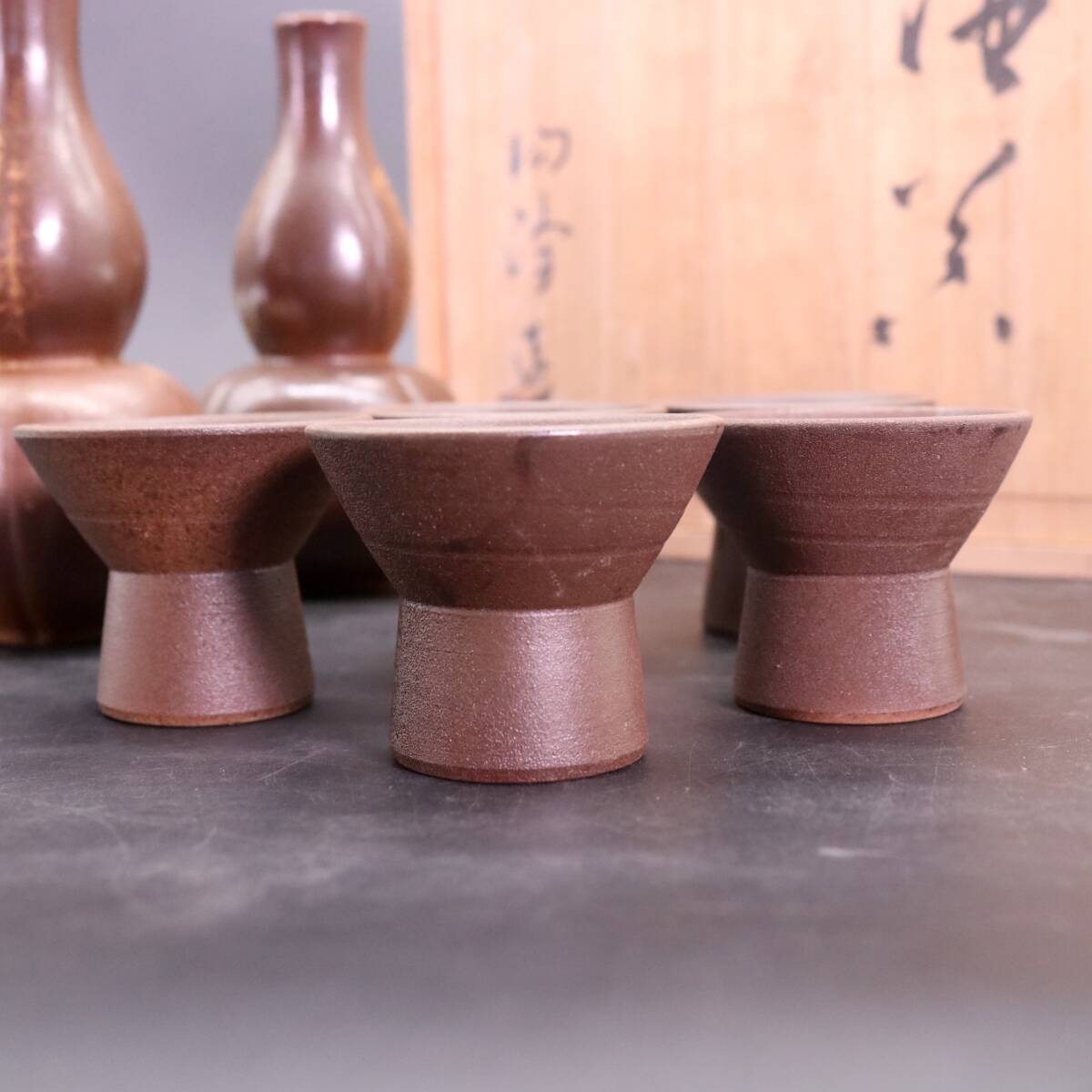 木村陶峰 備前焼 酒器セット 徳利 2客 猪口 5客 共箱 です。