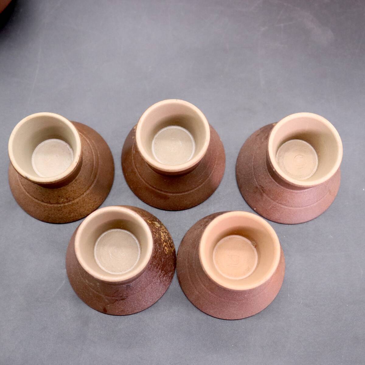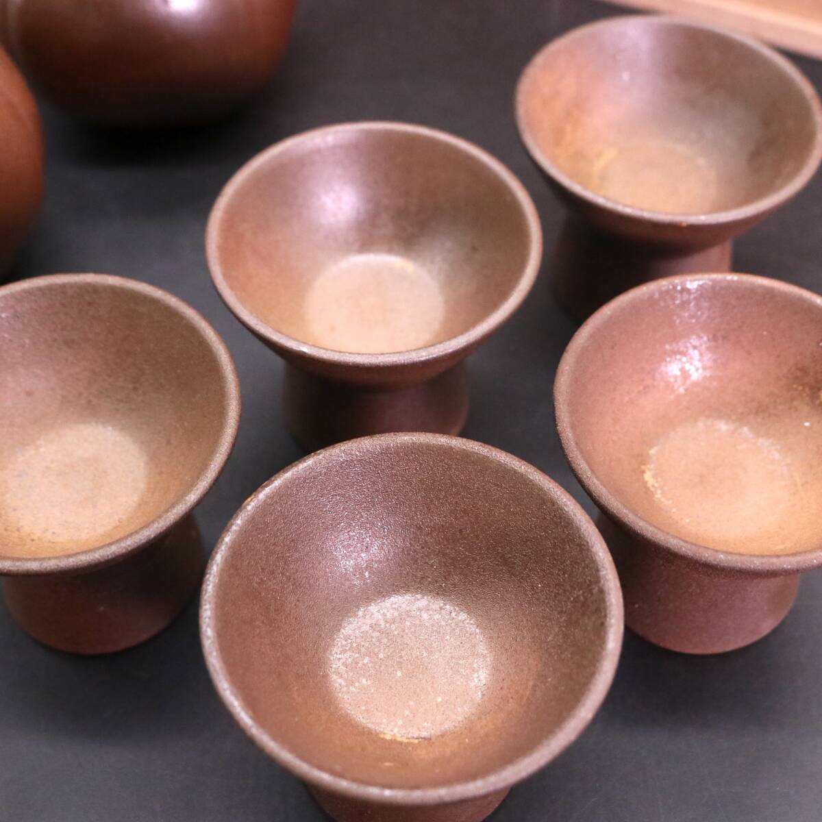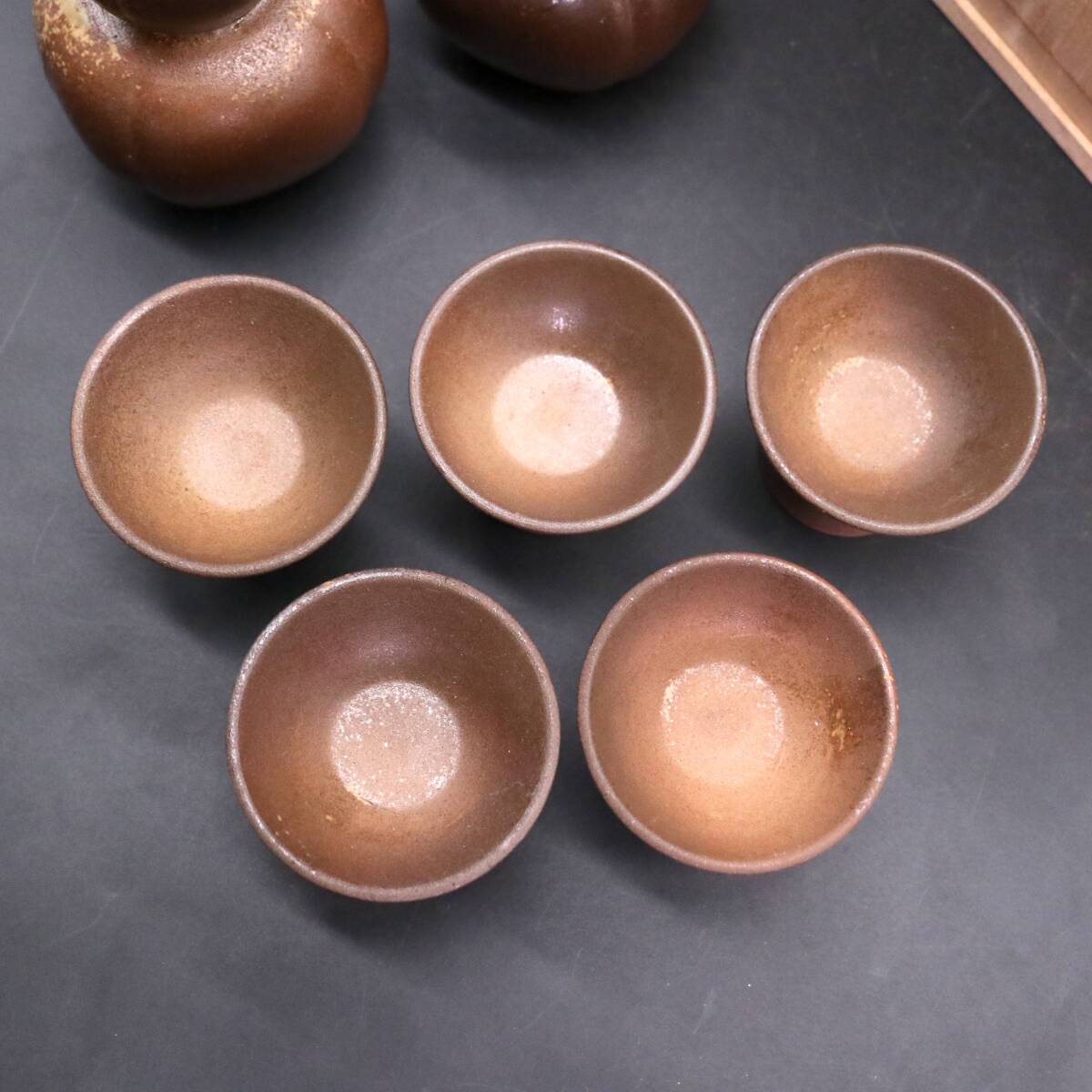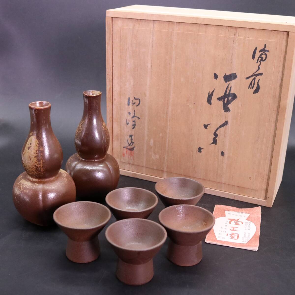 B1151 木村陶峰 備前焼 酒器セット 徳利 2客 猪口 5客 共箱