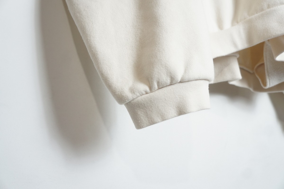 裏起毛素材を採用したスウェット生地のプルオーバーパーカー。
