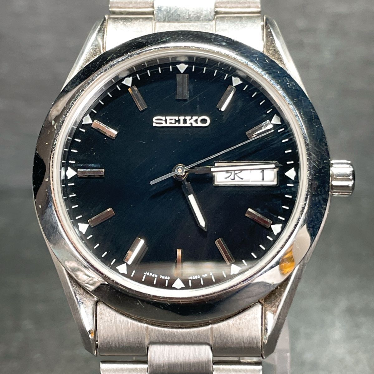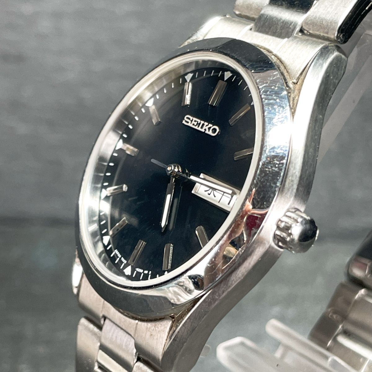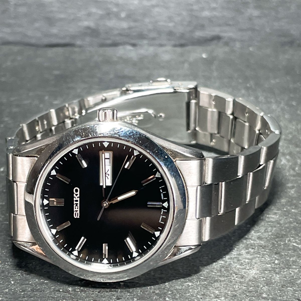 美品 SEIKO セイコー 7N43-9080 腕時計 アナログ クオーツ 3針 カレンダー ブラック文字盤 メタルバンド シルバー ラウンド 動作確認済み