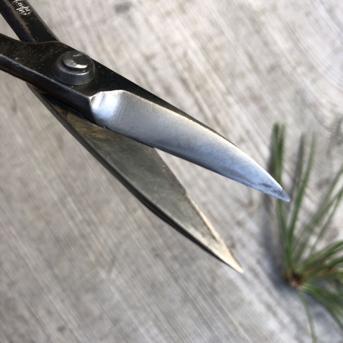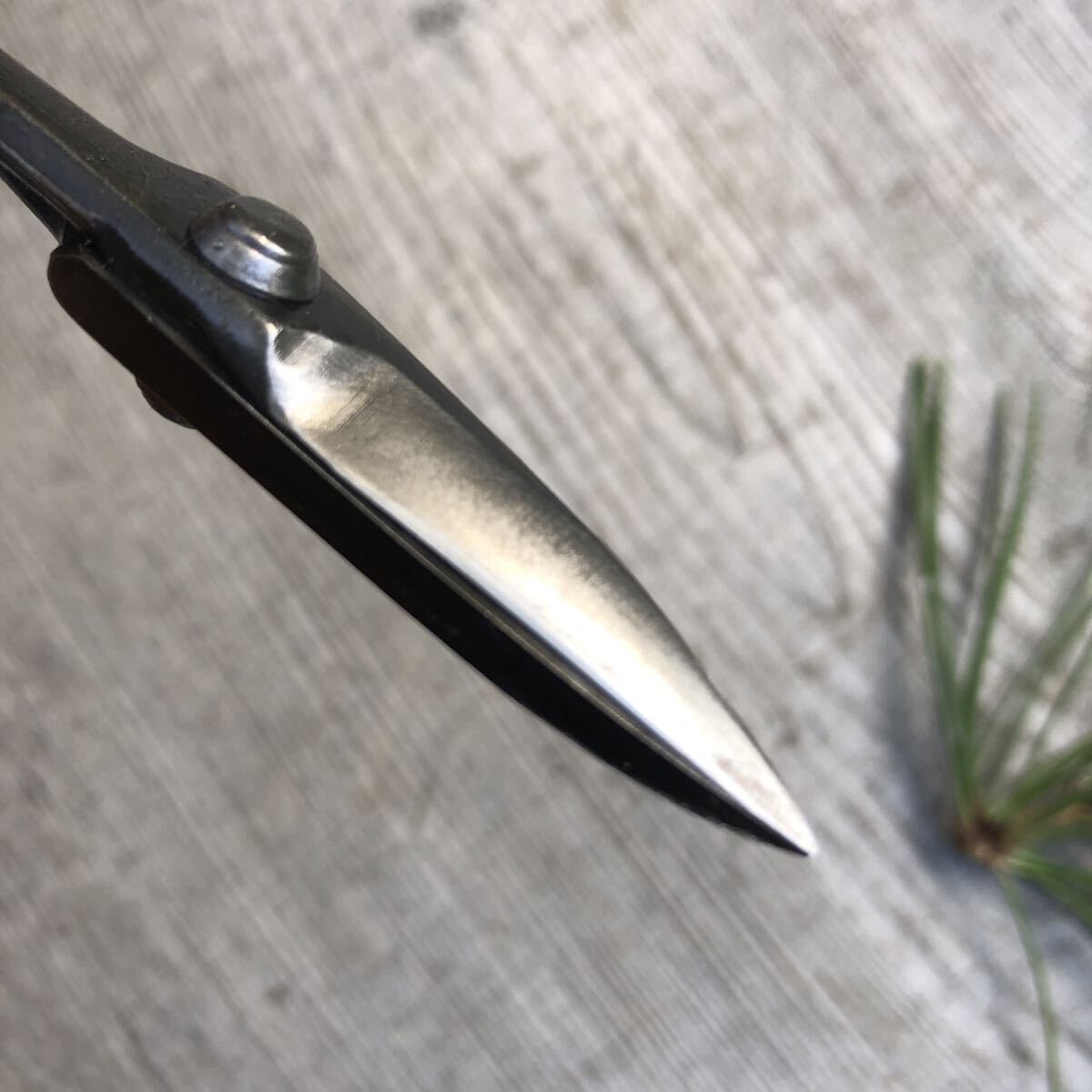 古い鋏ですが普通に使えて松のみどりや葉を切ることができます。