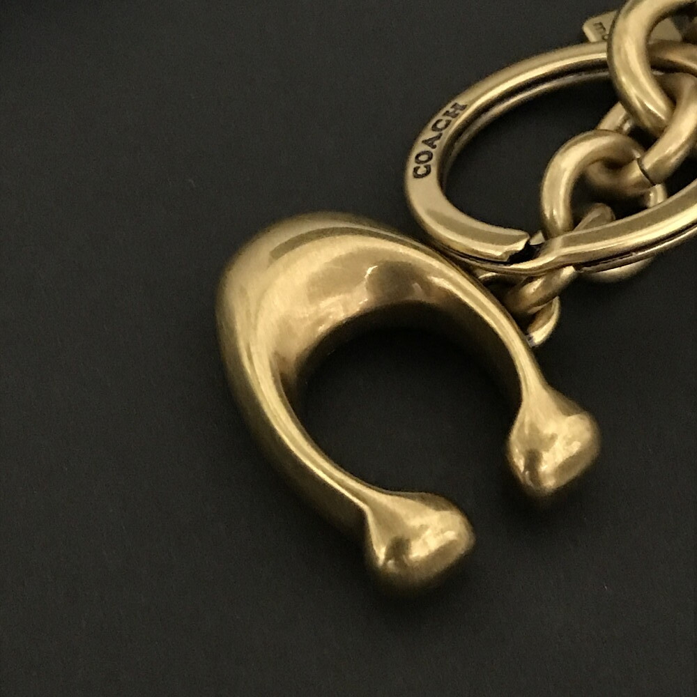 1円 美品 COACH コーチ Cロゴ キーホルダー キーリング アクセサリー ゴールド /ZX0753