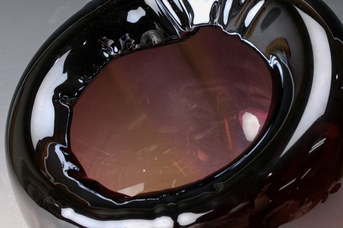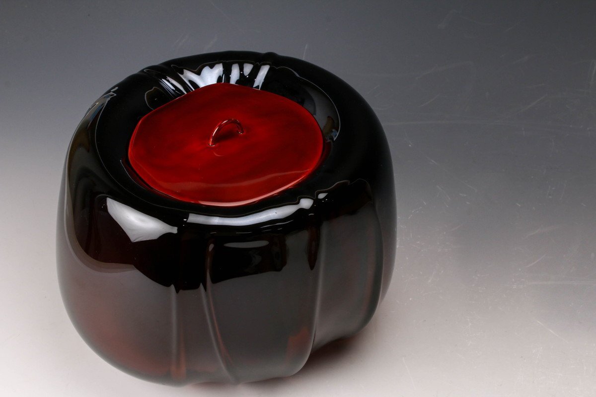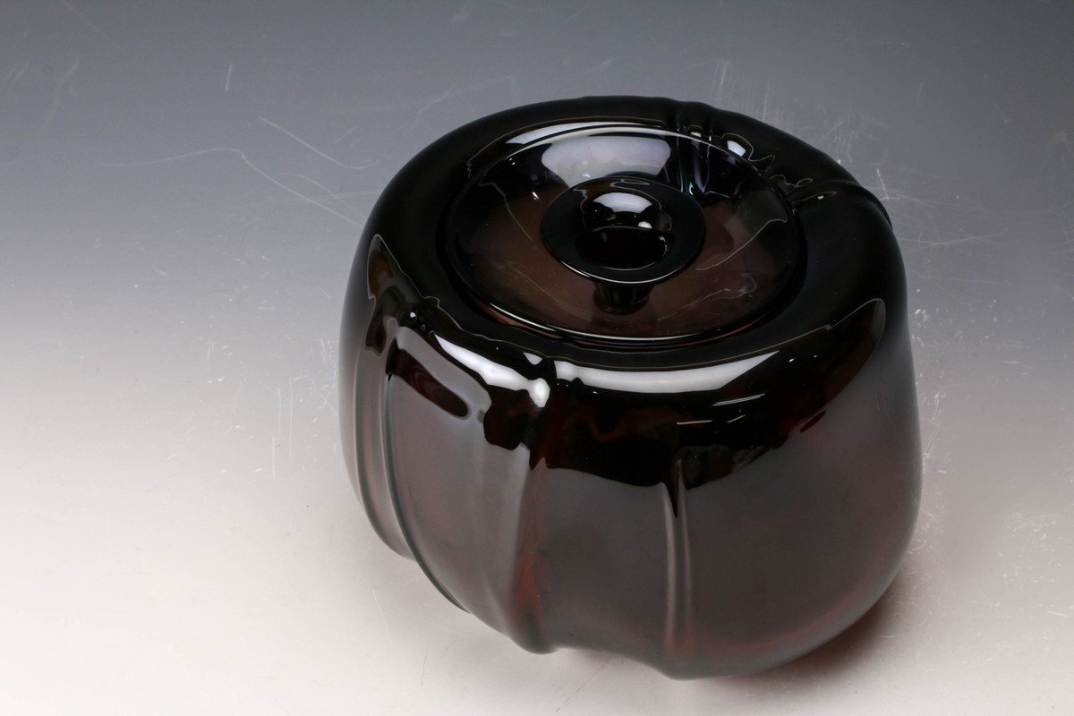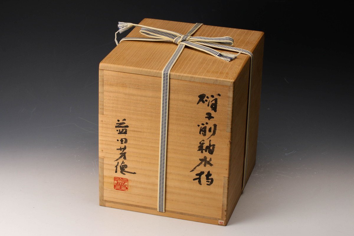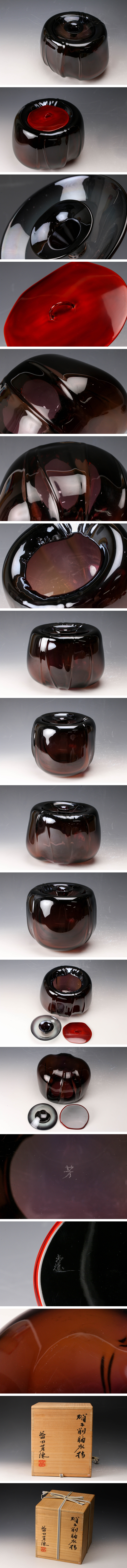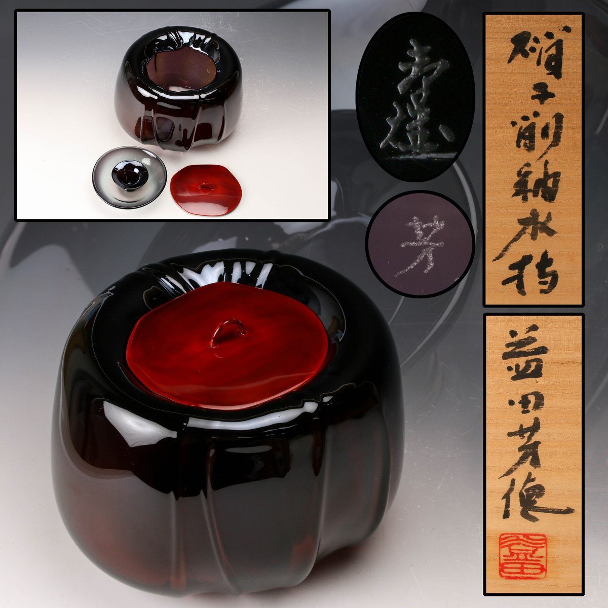 【佳香】益田芳徳 硝子削釉水指 共箱 塗蓋 茶道具 本物保証