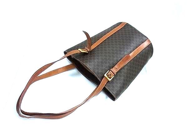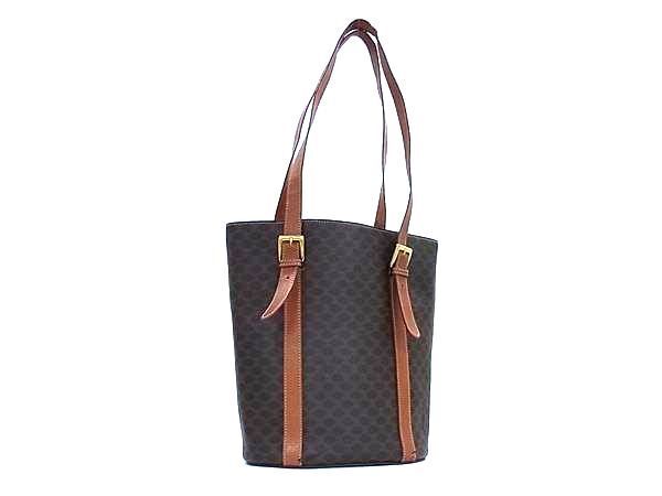 1円 CELINE セリーヌ ヴィンテージ マカダム柄 PVC×レザー トートバッグ ショルダーバッグ ハンドバッグ 肩掛けかばん ブラウン系 FS5202
