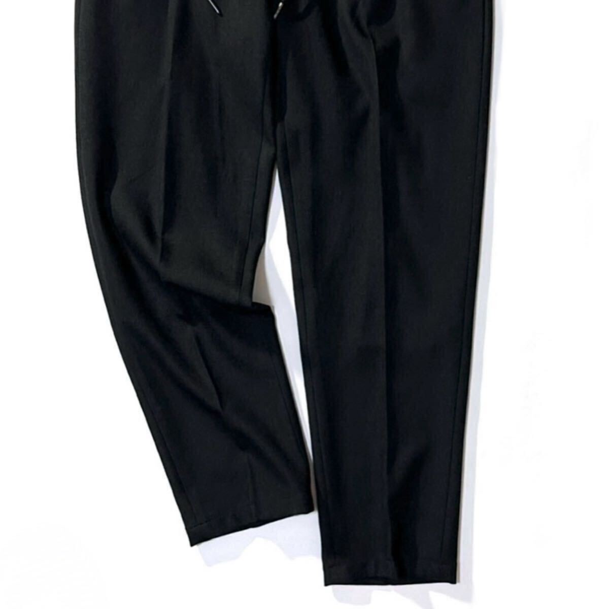ウエストはゴムシャーリングで、内側にドローコードを備えるイージーフィット仕様。腿周りに多少のゆとりがあり、膝下からはすっきりとテーパードが入る美しいシルエットです。オンでもオフでもどちらでも対応して頂ける万能型のトラウザーとなっております。