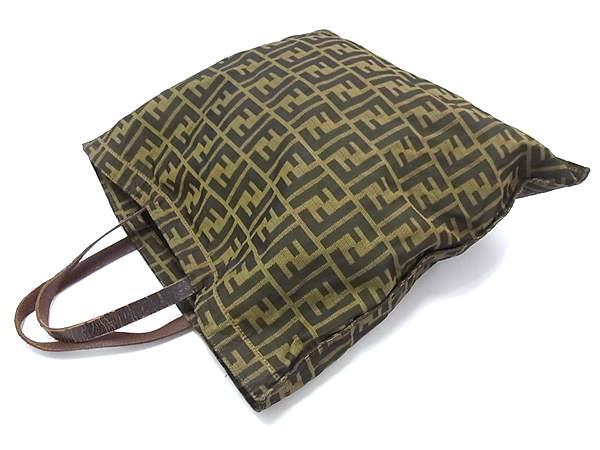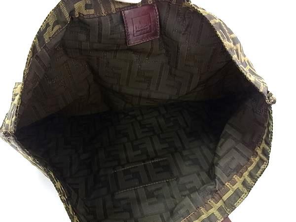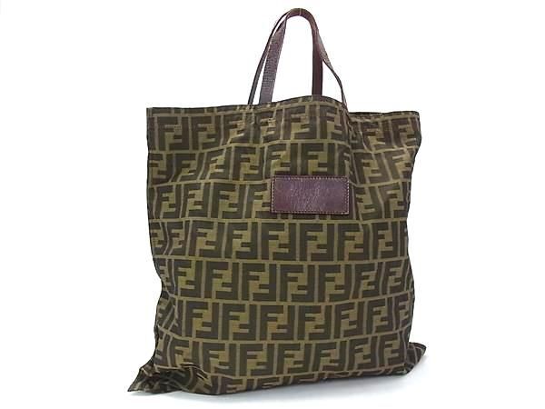 1円 FENDI フェンディ ズッカ柄 ナイロン×レザー ハンドバッグ トートバッグ メンズ レディース ブラウン系 DB2944