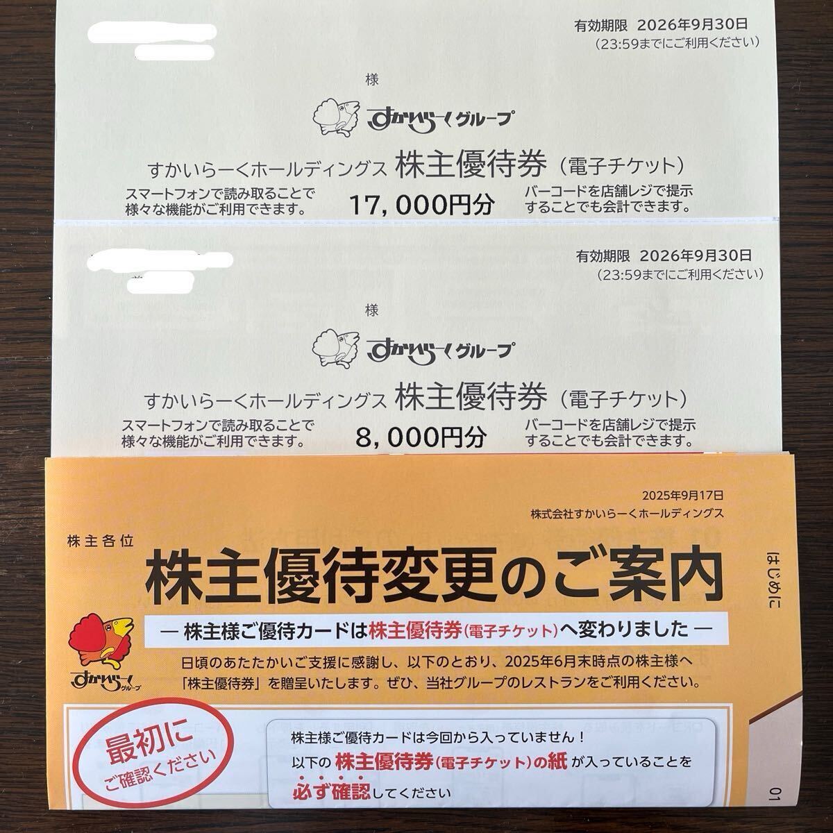 【最新:匿名無料配送】すかいらーく 株主優待25,000円分 有効期限:2026年9月30日まで