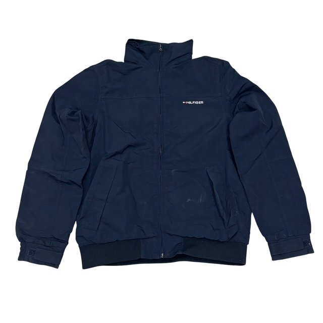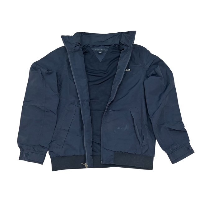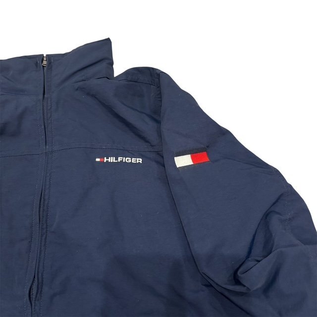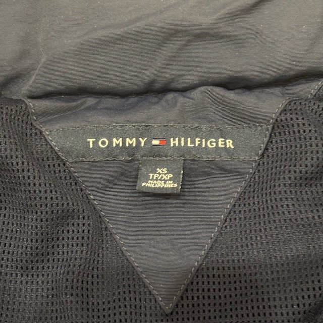 TOMMY HILFIGER トミーヒルフィガー メンズ XSサイズ フード収納 襟プリント ネイビー ブルゾン 上着 ファッション HMY |