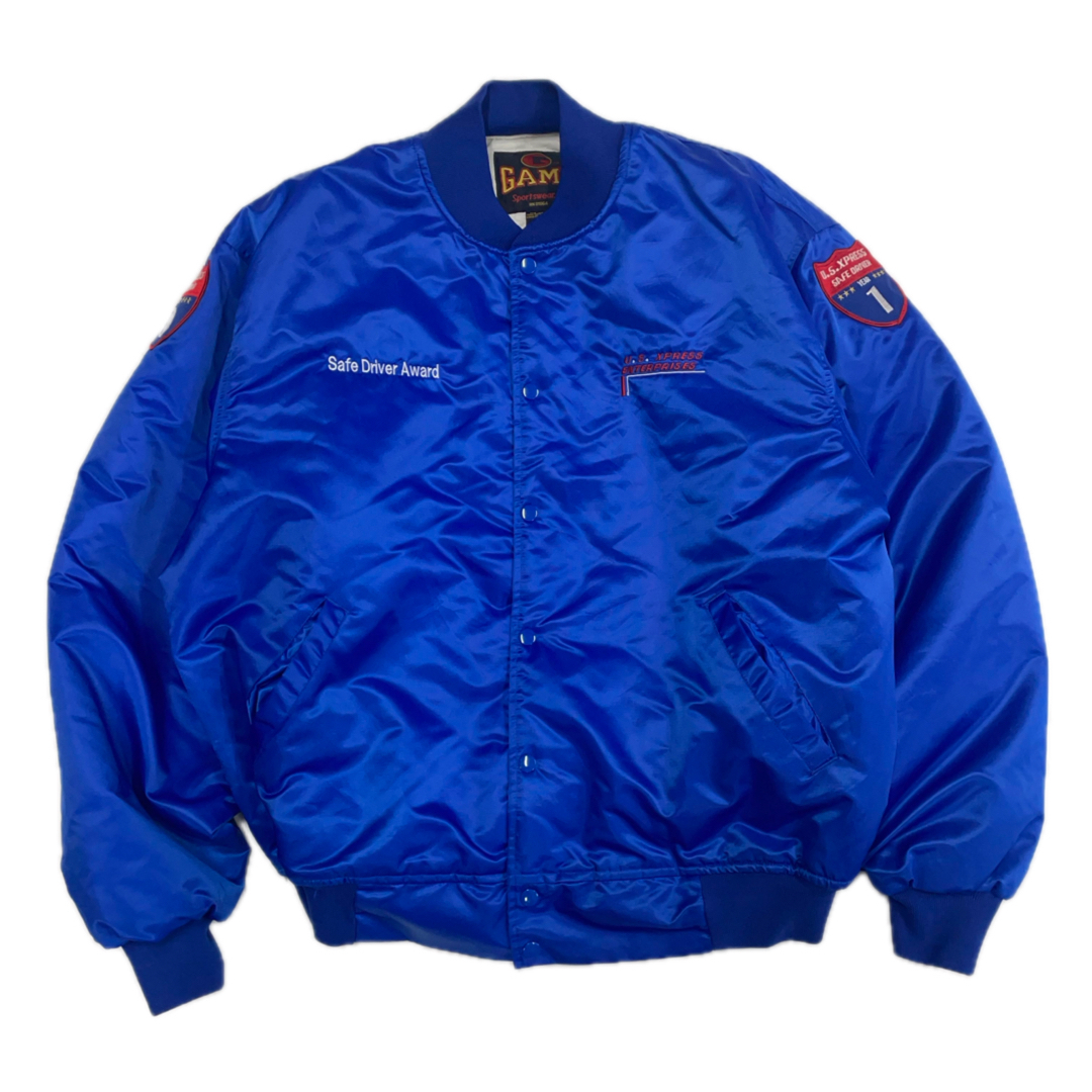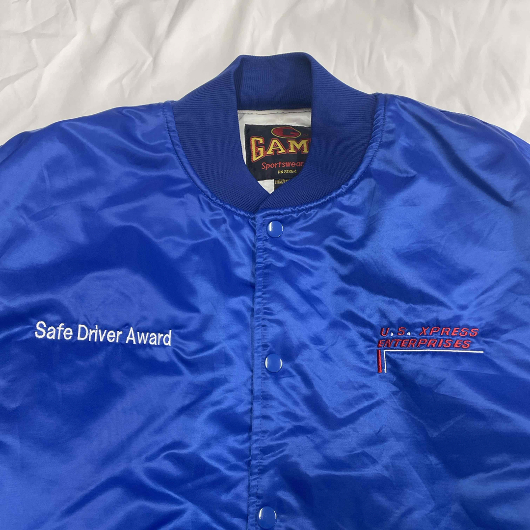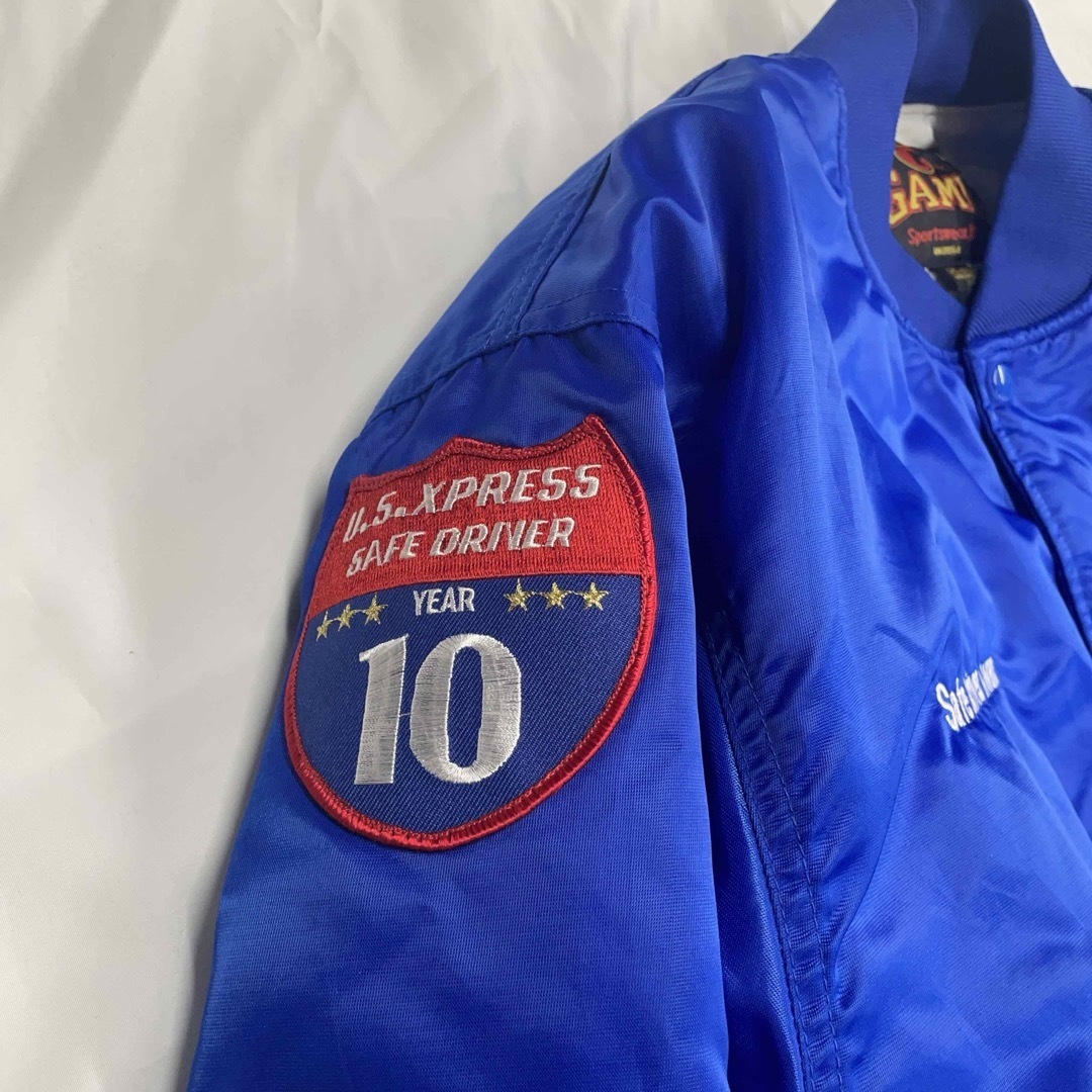 GAME Sportswear社製で、しっかりとしたキルティングライナー付きのナイロンジャケット。フロントには「Safe Driver Award」と「U.S. XPRESS Enterprises」の刺繍、両袖には「SAFE DRIVER YEAR 10」「SAFE DRIVER YEAR 1」のワッペン、背中には大型トラックとロゴの豪華な刺繍入り。