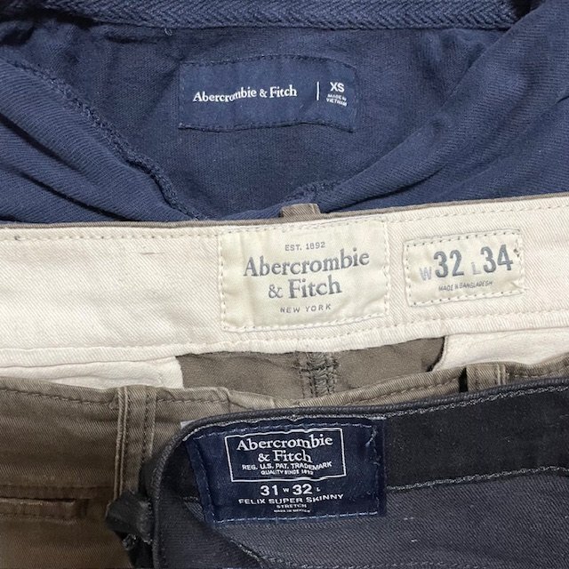 商品説明 アバクロンビー&フィッチのパーカー1点、パンツ2点のまとめです。 カジュアルなスタイルにぴったりです。 詳細 ●サイズ:(パーカー)【XSサイズ】肩幅40cm・バスト48.5cm・袖丈57.5cm・着丈58.5cm (黒パンツ)【W31 L32】ウエスト41cm・股下80cm (茶パンツ)【W32 L34】ウエスト44cm・股下83cm(平置き採寸) ●ランク:C~Eランク ●コンディション:パーカー、茶パンツは全体的に色褪せています。 パーカーの前面下に穴と汚れがあります。 茶パンツの左臀部に汚れがあります。 |