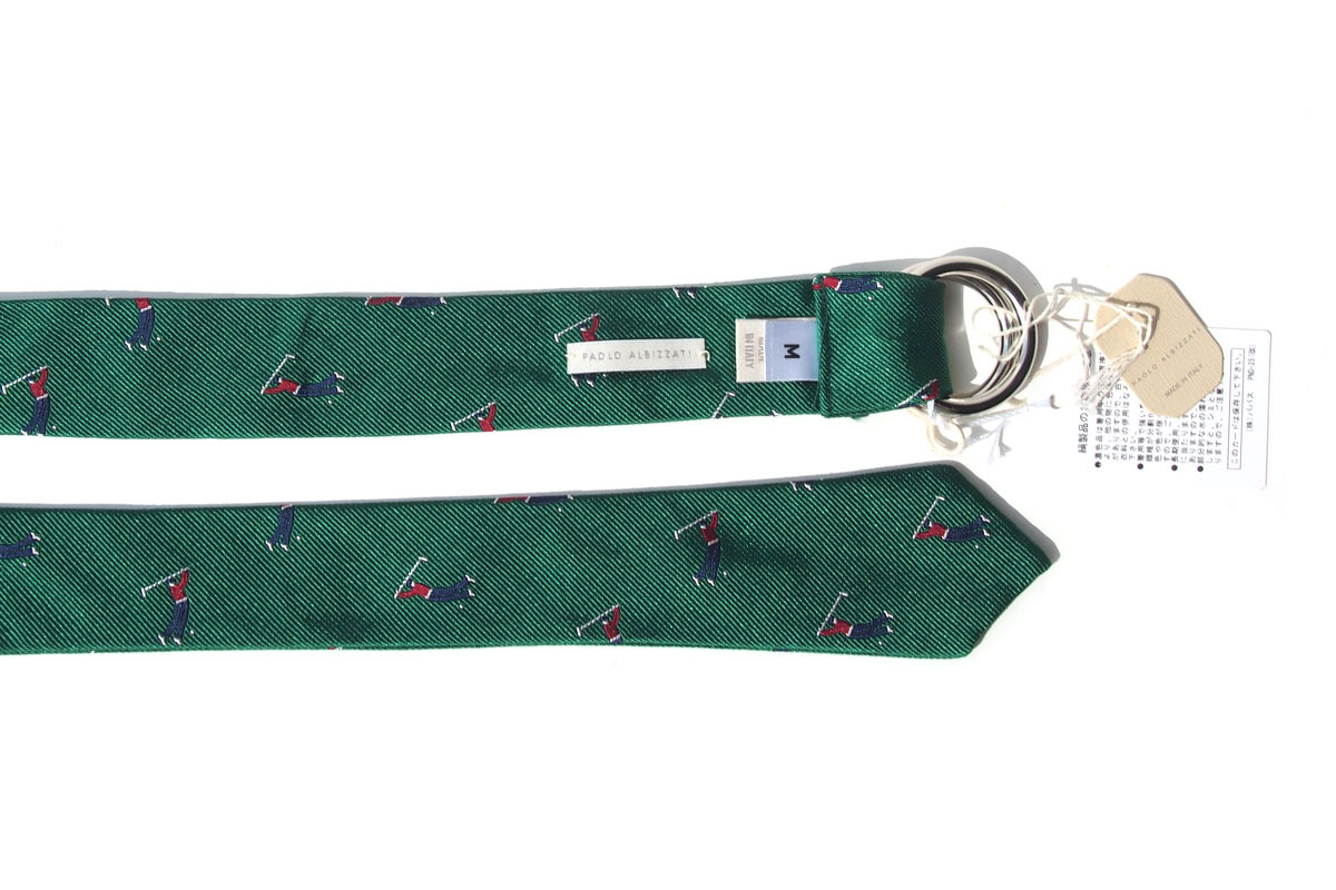 送料無料★新品|未使用|パオロ アルビザッティ|PAOLO ALBIZZATI |ゴルフ柄ネクタイ生地ベルト|M|グリーン